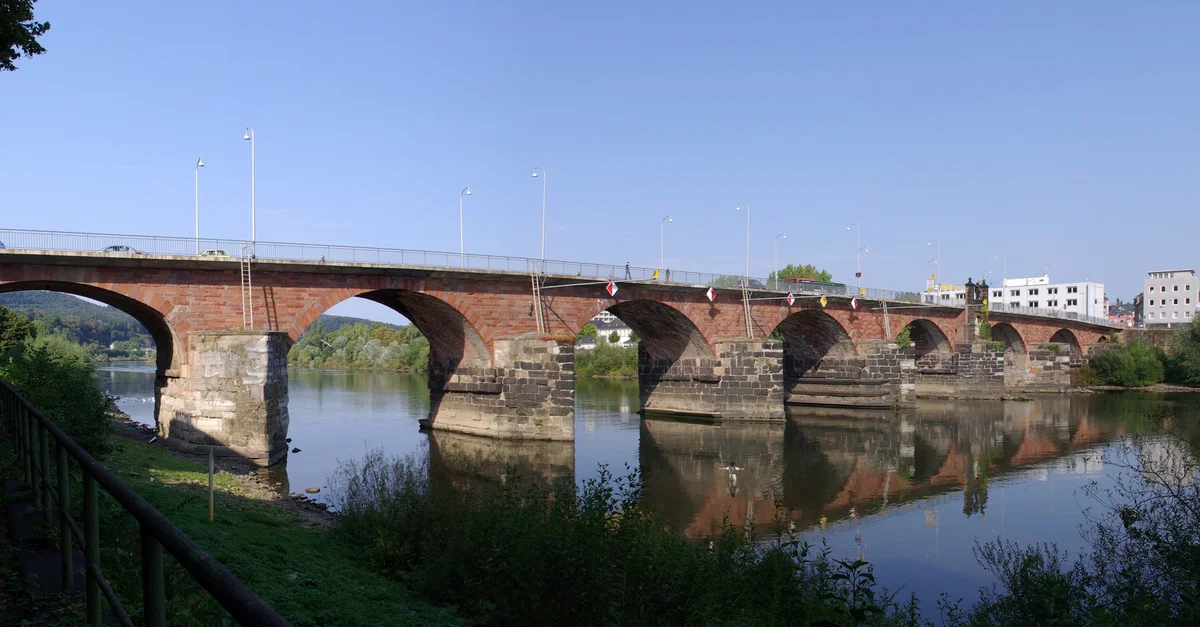 Spanning the Moselle River, the Roman bridge (German: Römerbrücke) in Trier is Germany's oldest standing bridge. It was built in 144 CE from black basalt from the Eifel mountains but its superstructure, now made of stone, was once made of wood so that the bridge could be set on fire in times of war.