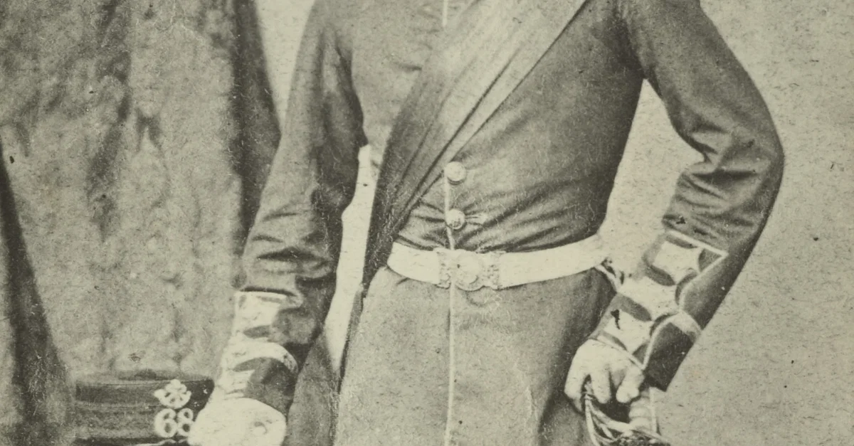 An 1860 CE painting of Horatio Gordon Robley (1840-1930 CE) - British soldier, artist and collector of the macabre.