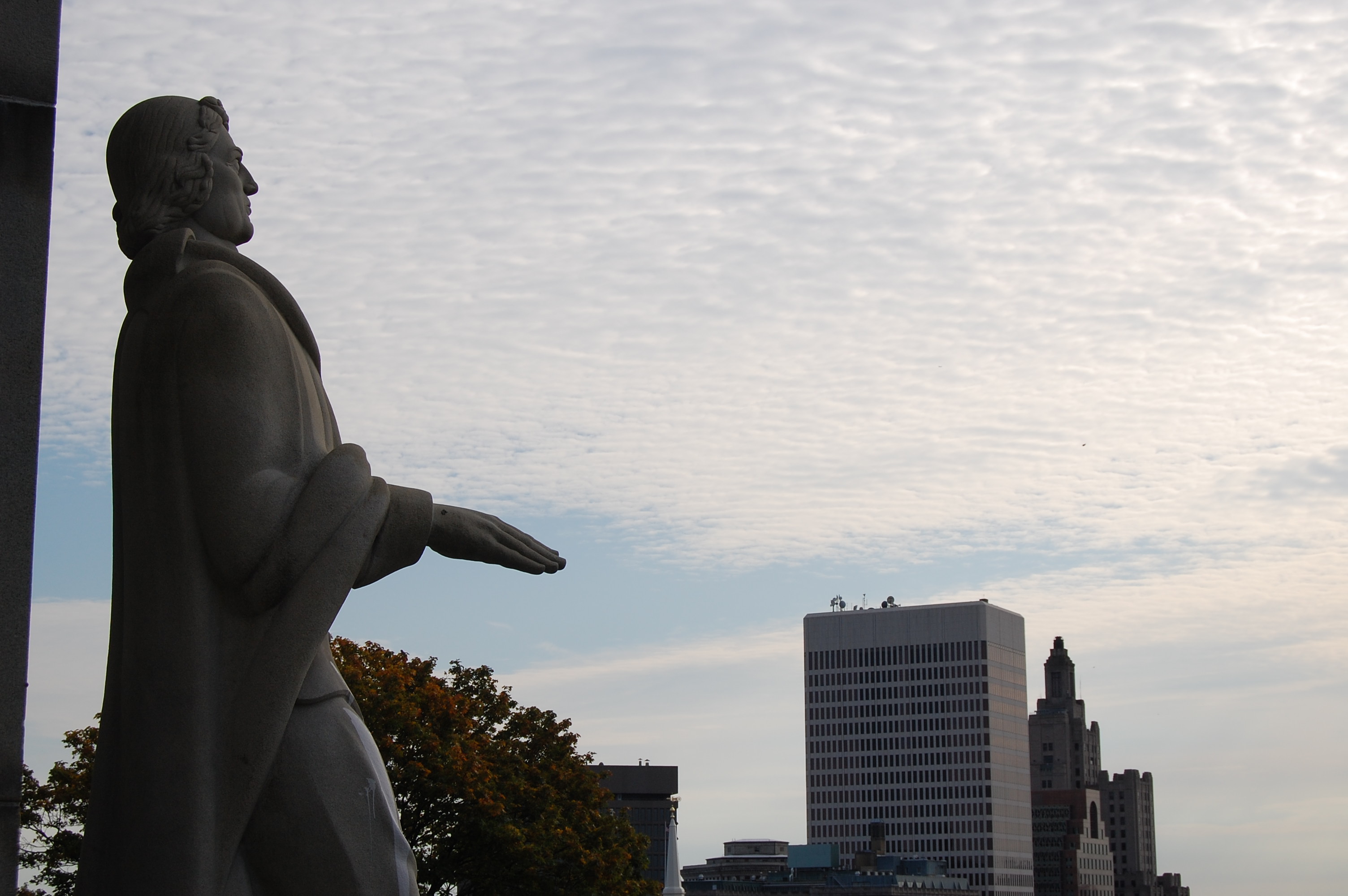 Statue of Roger Williams (l. 1603-1683 CE) at Prospect Park, Providence, Rhode Island.