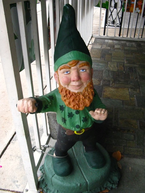 A modern figure of a leprechaun, the diminutive fairy-goblin of Irish folklore. The youthfulness, hat and red beard are not typical of the medieval character.