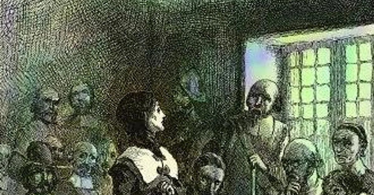 Anne Hutchinson on Trial, an illustration depicting the trial of religious dissenter Anne Hutchinson (l. 1591-1643 CE), by Edwin Austin Abbey, 1901 CE.