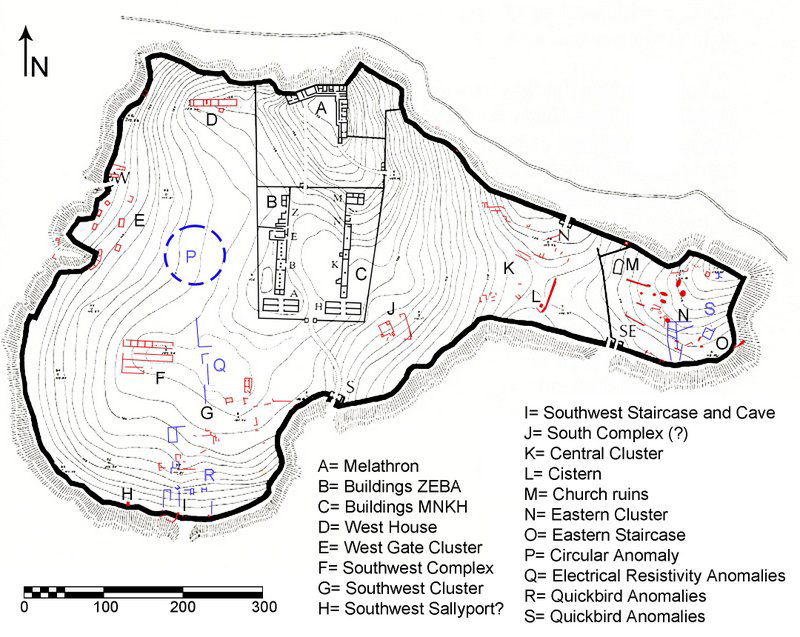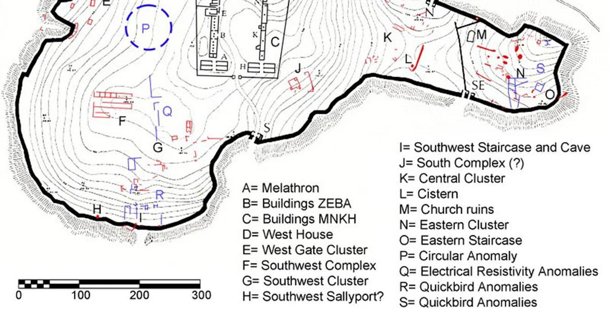 Recently revealed structures (red) at the Citadel of Gla Photo © Antonia Stamos after Iakovidis, Gla and the Kopais in the 13th century BCE. (2001), Plan 1.
