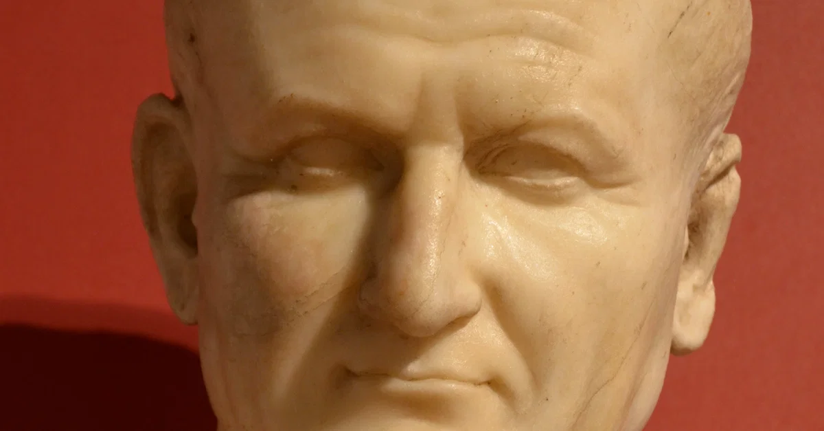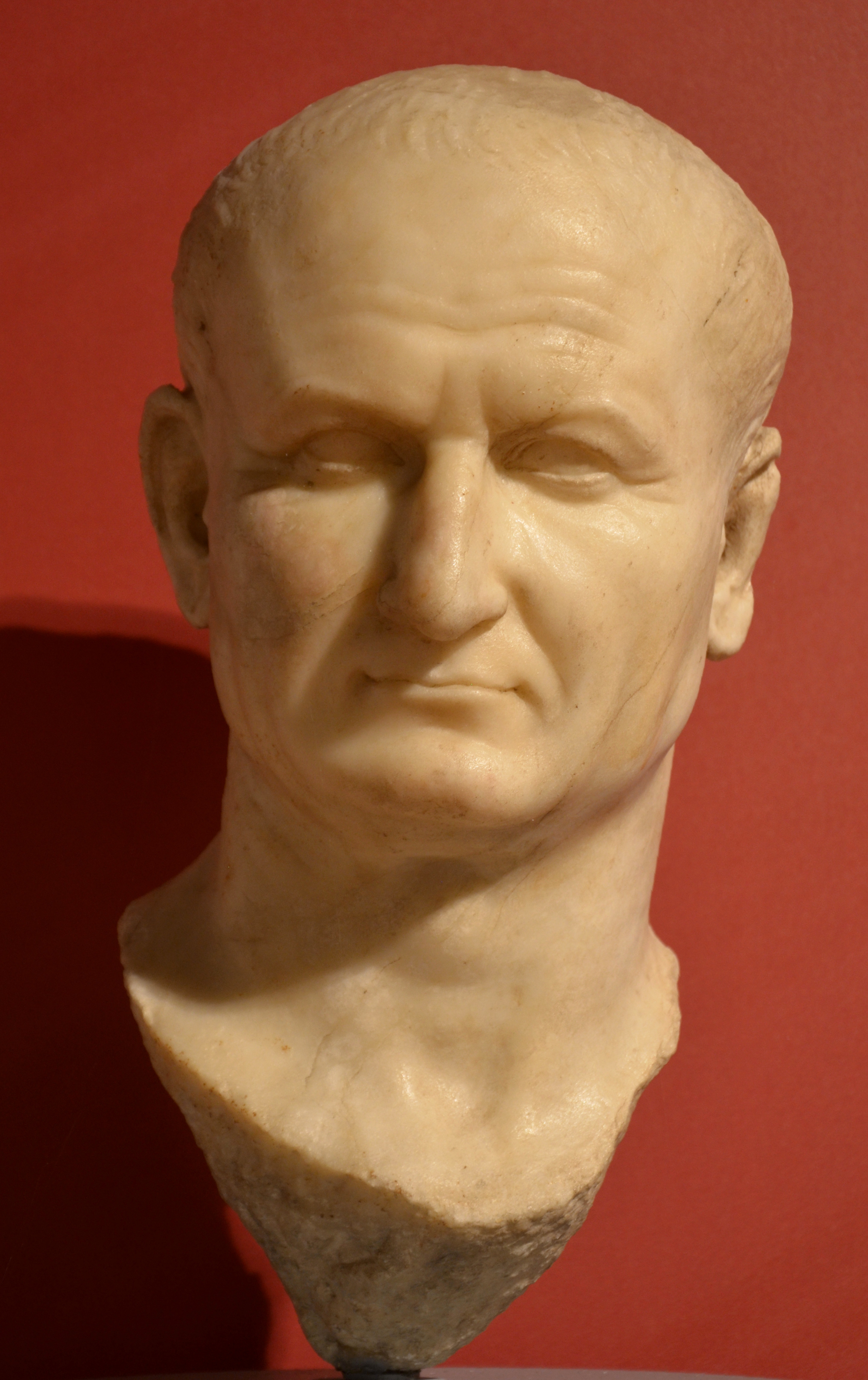 A marble portrait of Vespasian (r. 69 to 79 CE) found at Lucus Feroniae (an ancient Roman colony near Rome). This portrait, carved in a high-quality Parian marble, was refashioned from the Emperor Nero (r. 54 to 68 CE) into the likeness of the Emperor Vespasian following Nero's Damnatio Memoriae.