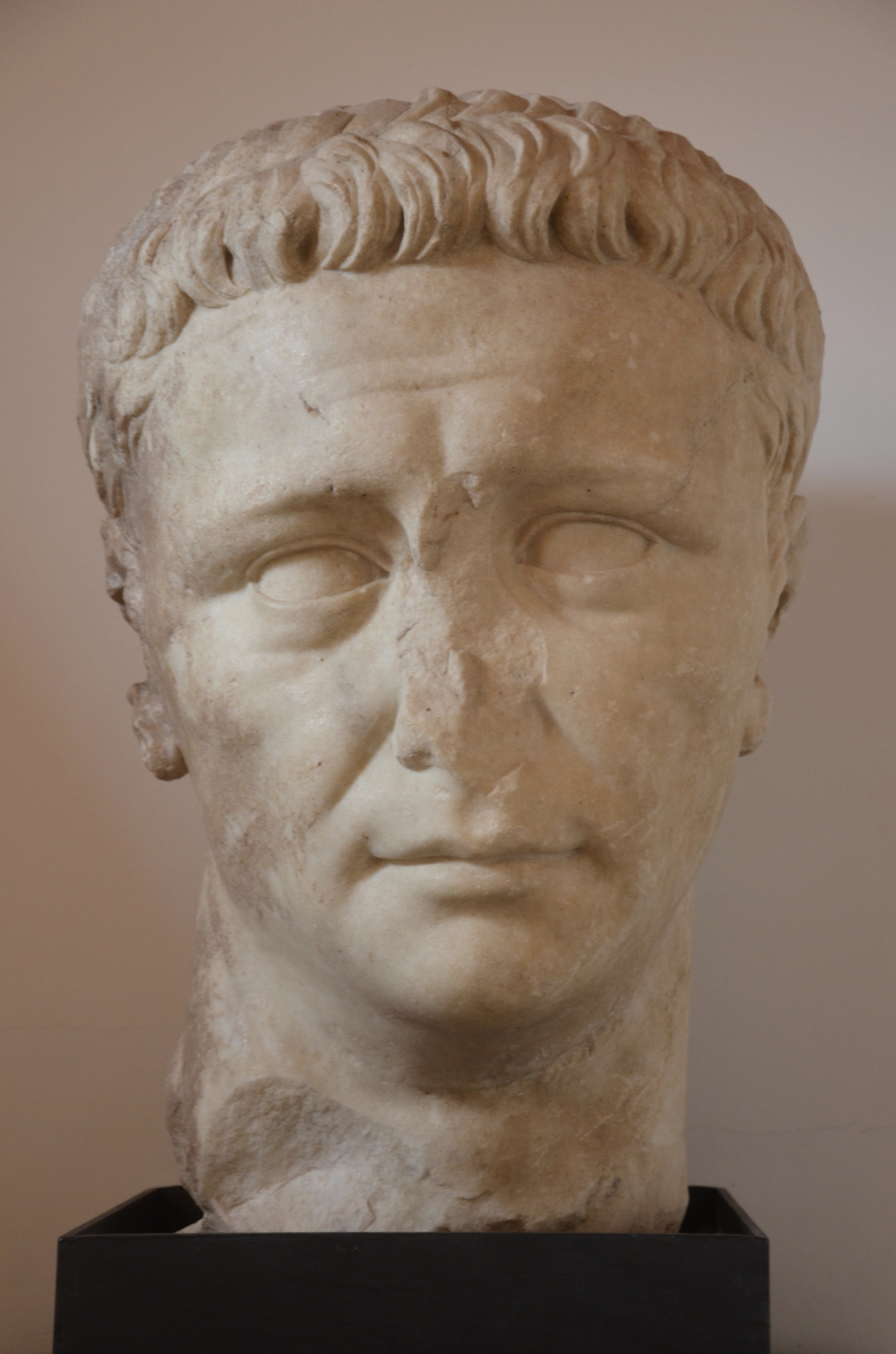 Head from a colossal statue (twice life-size) of the Roman Emperor Claudius (ca. 50 CE) that stood in the forum of Carsulae (Umbria, Italy). Only the head and a knee of the statue survive.