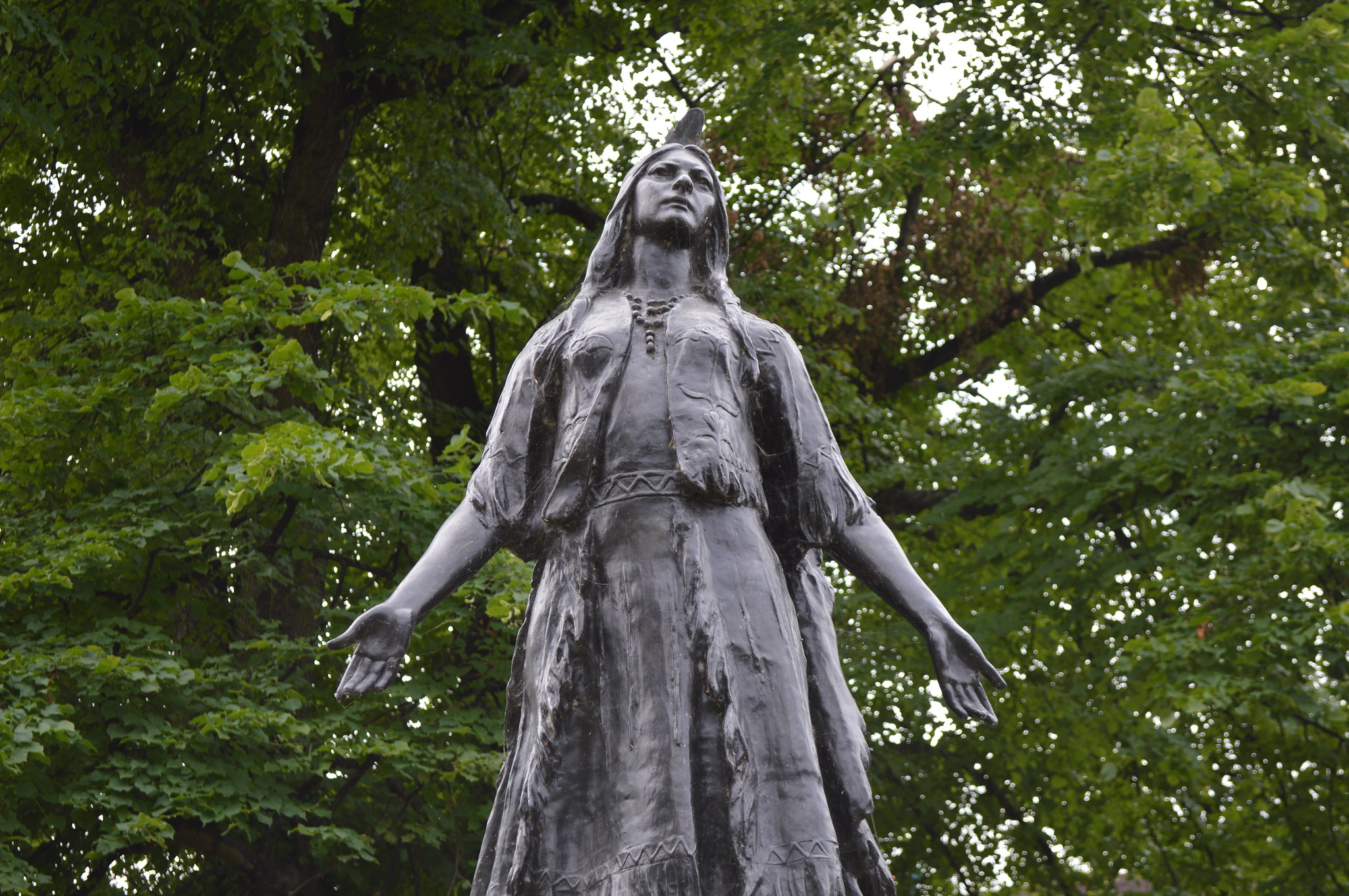 Statue of Pocahontas (l. c. 1596-1617 CE, also known as Amonute, Matoaka) in Gravesend, UK.