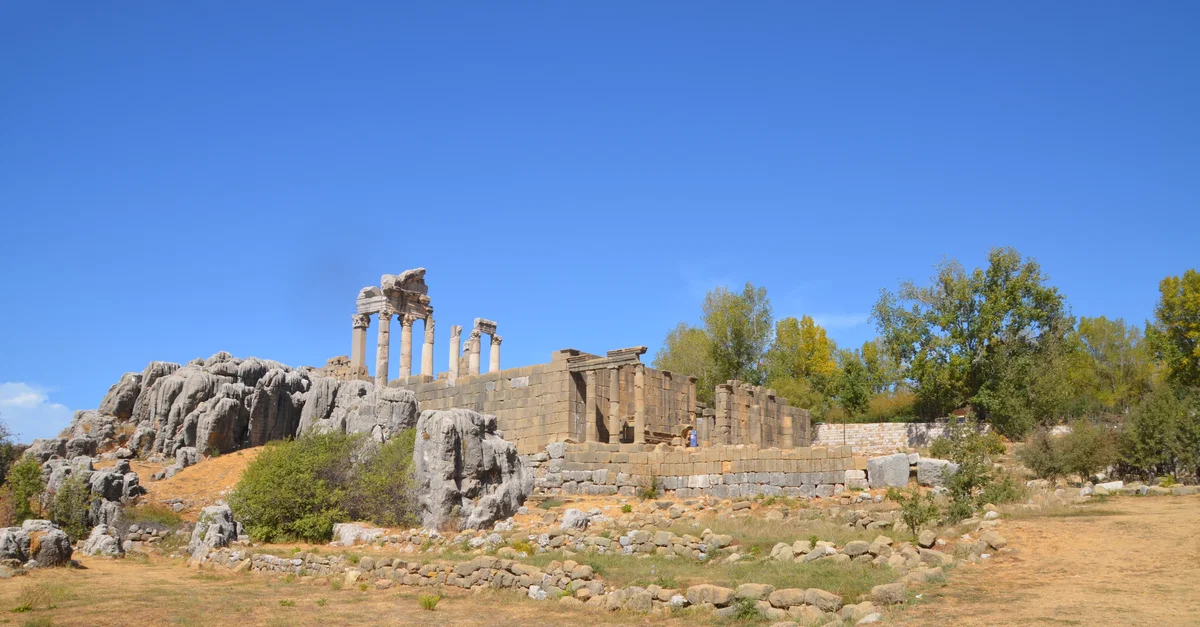 The archaeological site of Faqra in Lebanon, located in the Nahr El-Kalb valley region in the north of Beirut. Its most impressive ruins are of the monumental temple–sanctuary dedicated to a deity named Zeus Beelgalasos, the local Baal of Faqra.