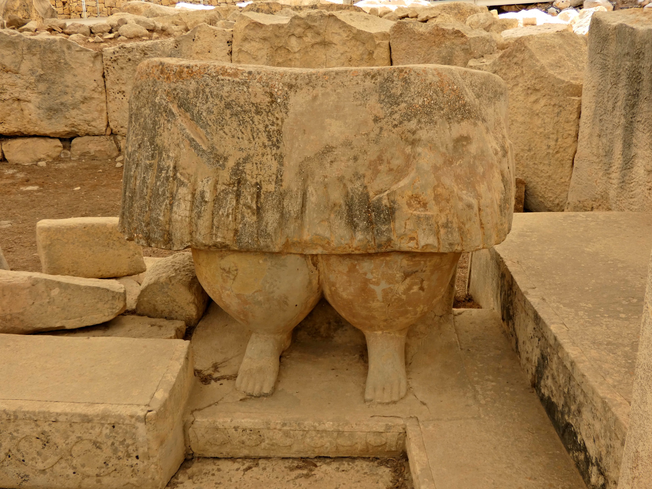 'Mother goddess' statue with a pleated skirt found outside of the South Temple of the Tarxien Temples, Malta, c. 3000-2500 BCE.