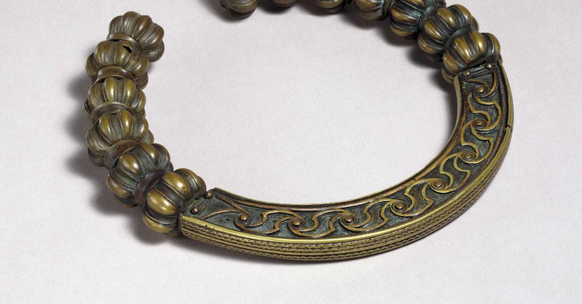 The Celtic Lochar Moss torc from Dumfries and Galloway, Scotland. Copper alloy, 1st-2nd century CE. Diameter: 16.5 cm. (British Museum, London)