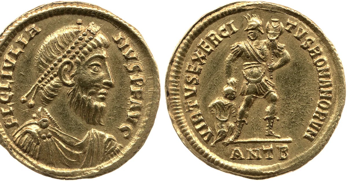 Gold coin of Roman emperor Julian the Apostate (r. 361-363 CE), minted in Antiochia ad Orontem.