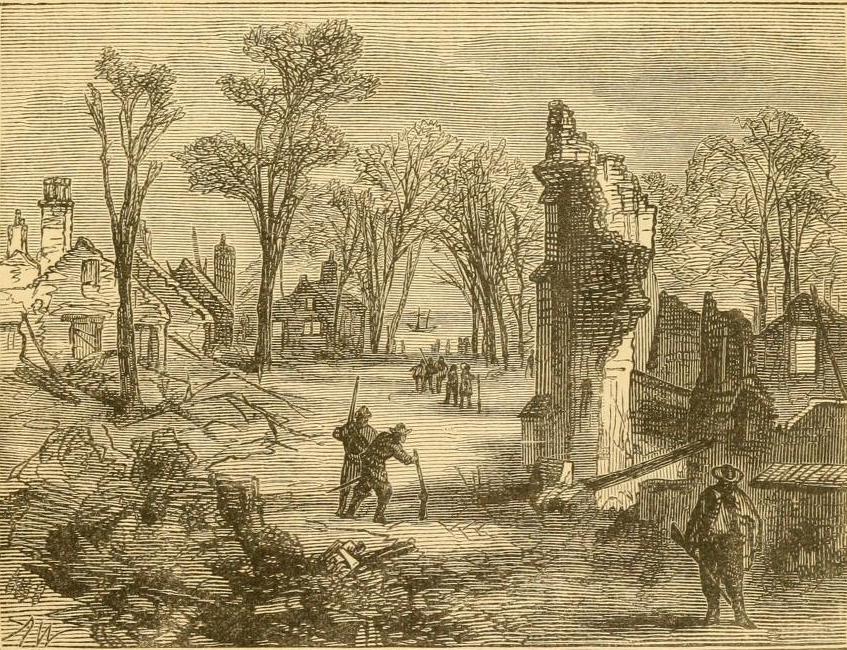 Ruins of Jamestown, 1676. Illustration from page 45 of A School History of the United States, from the Discovery of America to the Year 1878 by David B. Scott, New York, Harper & brothers, 1879 CE.
