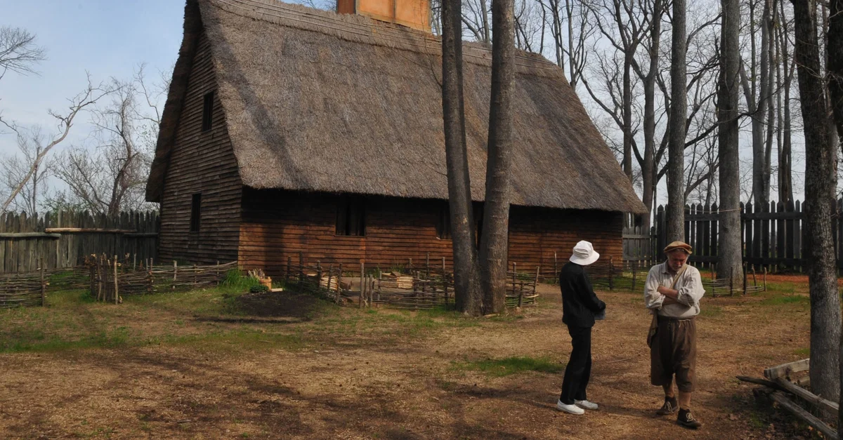 Reconstruction of an English colonist's home at Henricus Colony of Virginia, c. 1611 CE.