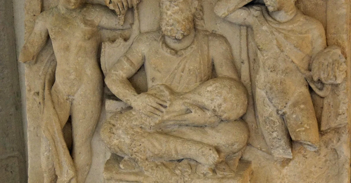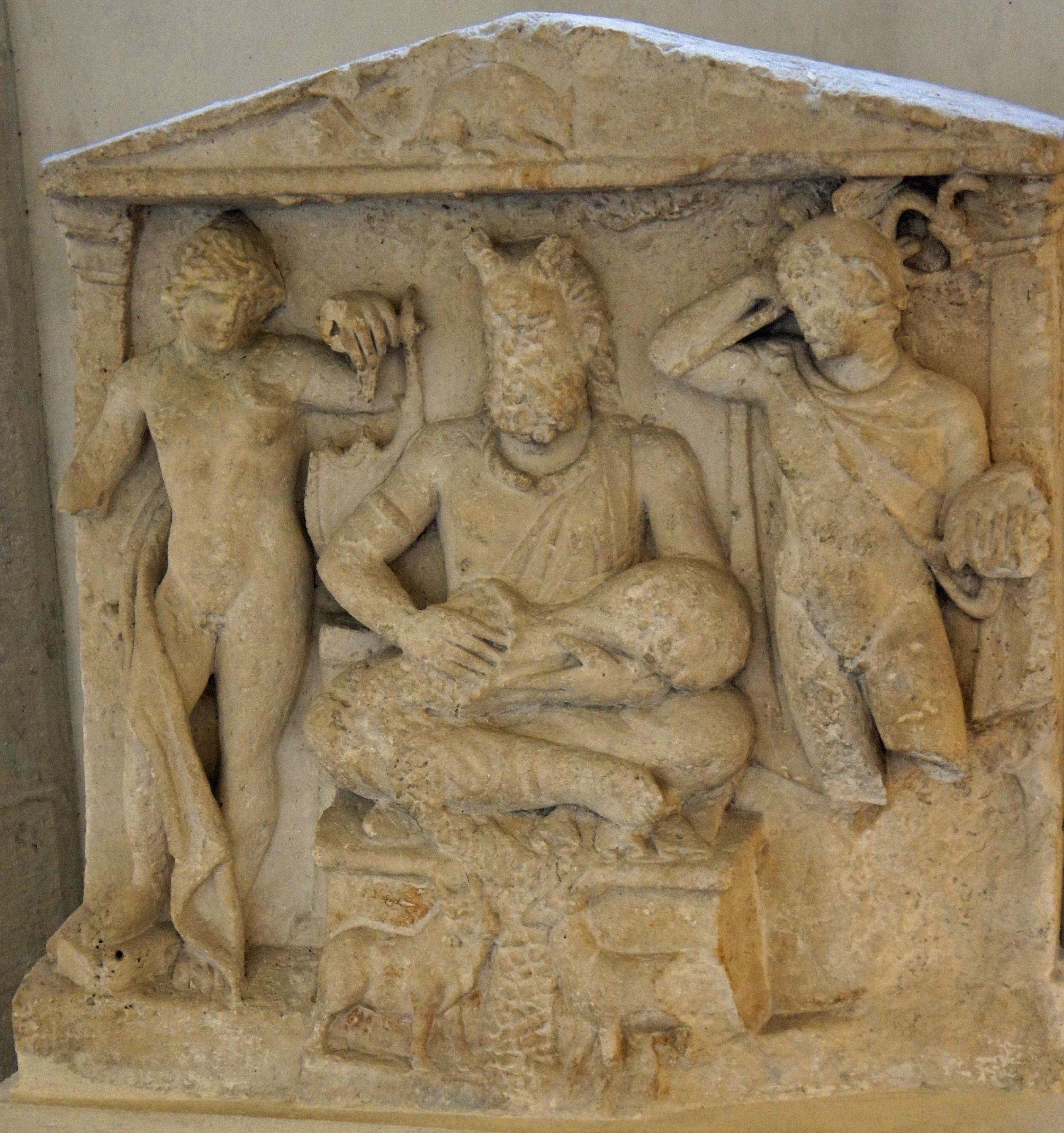 A 1st century CE bas-relief showing the Celtic god Cernunnos and Apollo (left) and Mercury (right). (Musée Saint-Remi, Rheims, France)