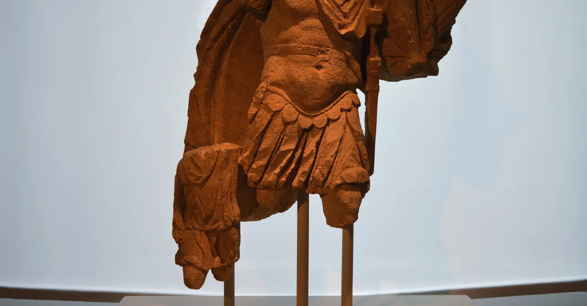 Limestone statue group depicting Aeneas carrying Anchises, from a mausoleum of Cologne, 2nd century CE. LVR-LandesMuseum Bonn, Germany.