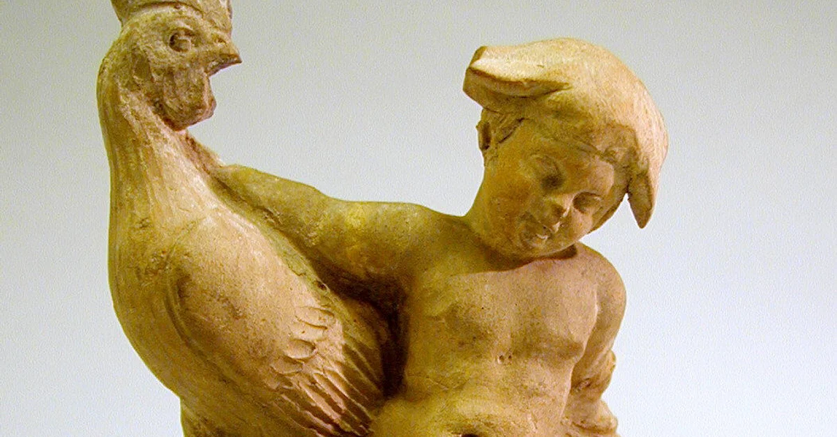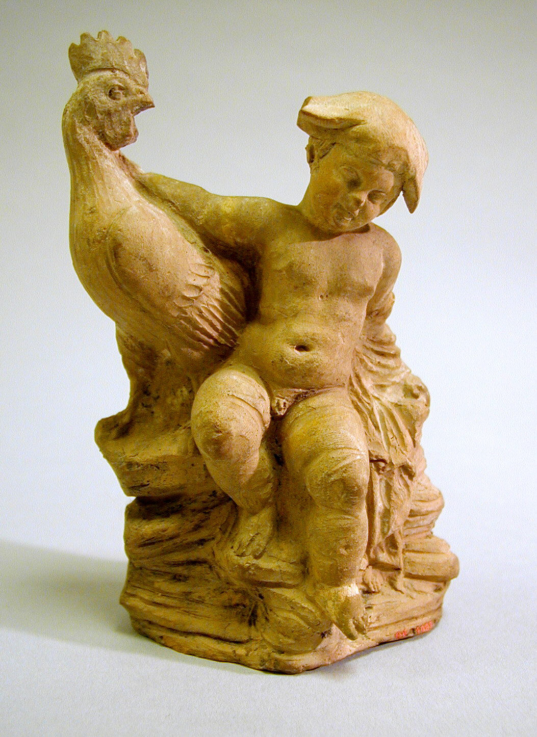A Hellenistic statuette of a little boy with a pet rooster or game-cock. Roosters were common pets in ancient Greece, often given to children as playmates, or given to lovers as tokens of affection. Terracotta. 2nd Century BCE, Pontus. Height: 12.5 cm (4 15/16 in). (Courtesy of the Metropolitan Museum of Art).