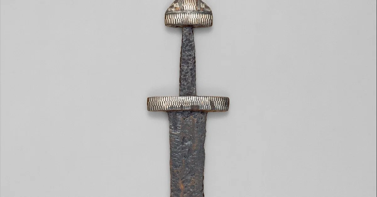 A 10th Century CE steel sword, likely made in Scandinavia. The high quality of the pattern-welded steel blade, and beautiful decoration on the hilt, indicates that it was owned by a high status warrior. Steel blade, decorated with copper, silver and niello. 95.9 cm (37 3/4 in) x 11 cm (4 5/16 in). Weight: 1021 g (2 lb. 4 oz).(Courtesy of the Metropolitan Museum of Art)