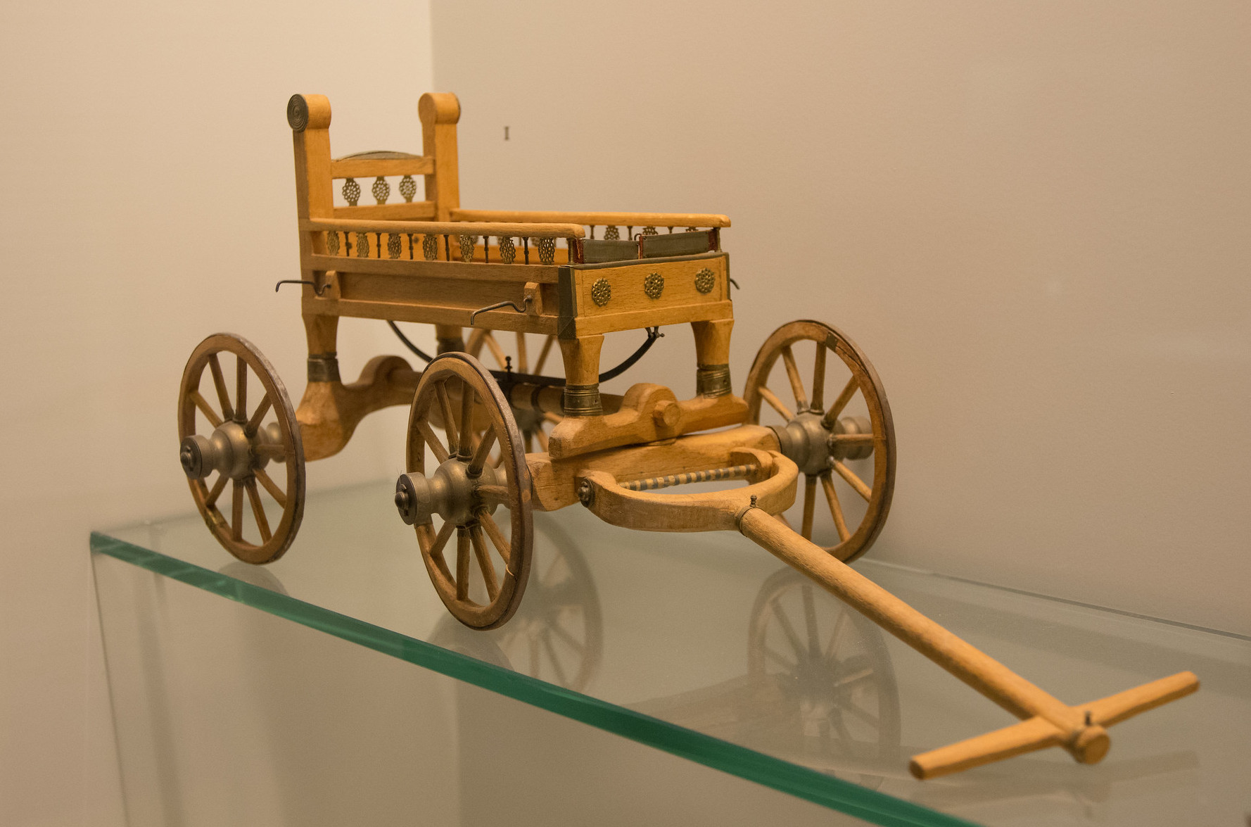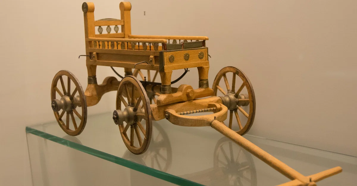 A model of the waggon from the Celtic Vix burial, Châtillon-sur-Seine, in northeast France close to a fortified Celtic site or oppidum and in the vicinity of at least four more burials. Discovered undisturbed, the princely burial dates to the late 6th- or early 5th century BCE. The deceased was placed on the wagon which had had its wheels removed and placed against the wall of the tomb.