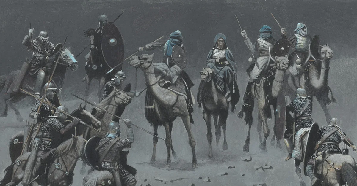 Zenobia of Palmyra (born c. 240 CE, death date unknown) is captured by Roman cavalry, by Zvonimir Grbasic. Courtesy of Ancient History Magazine / Karwansaray Publishers.