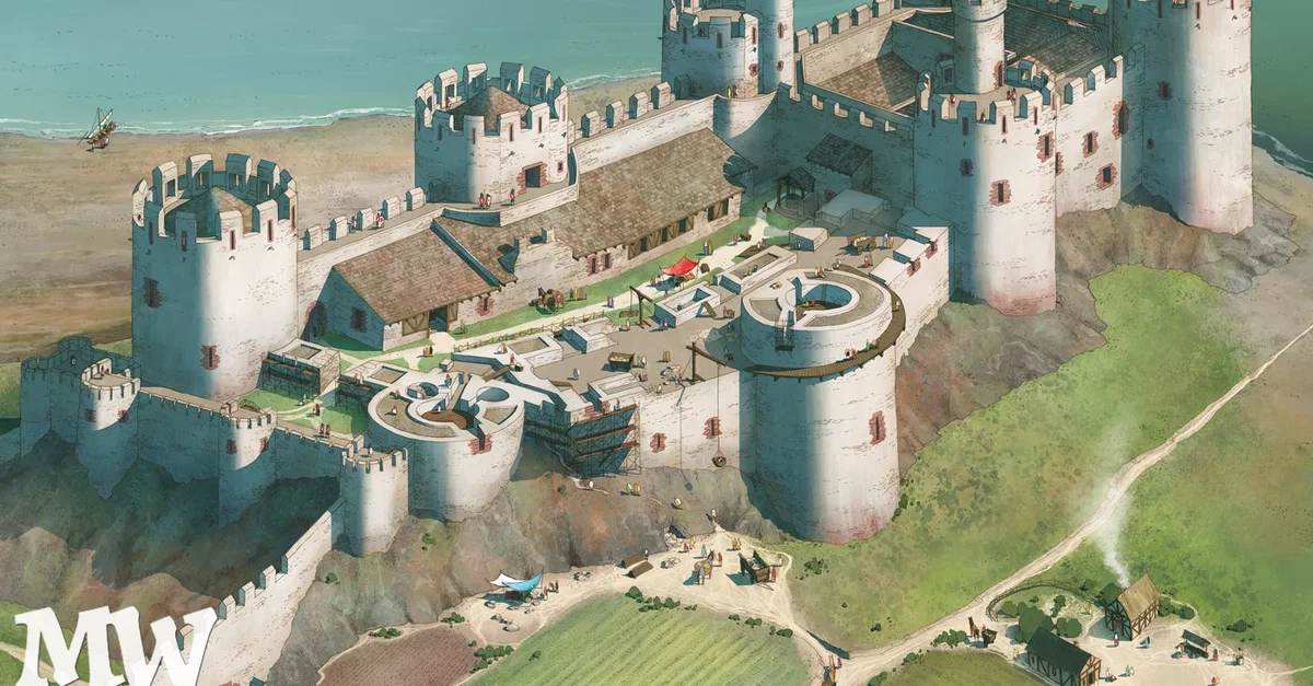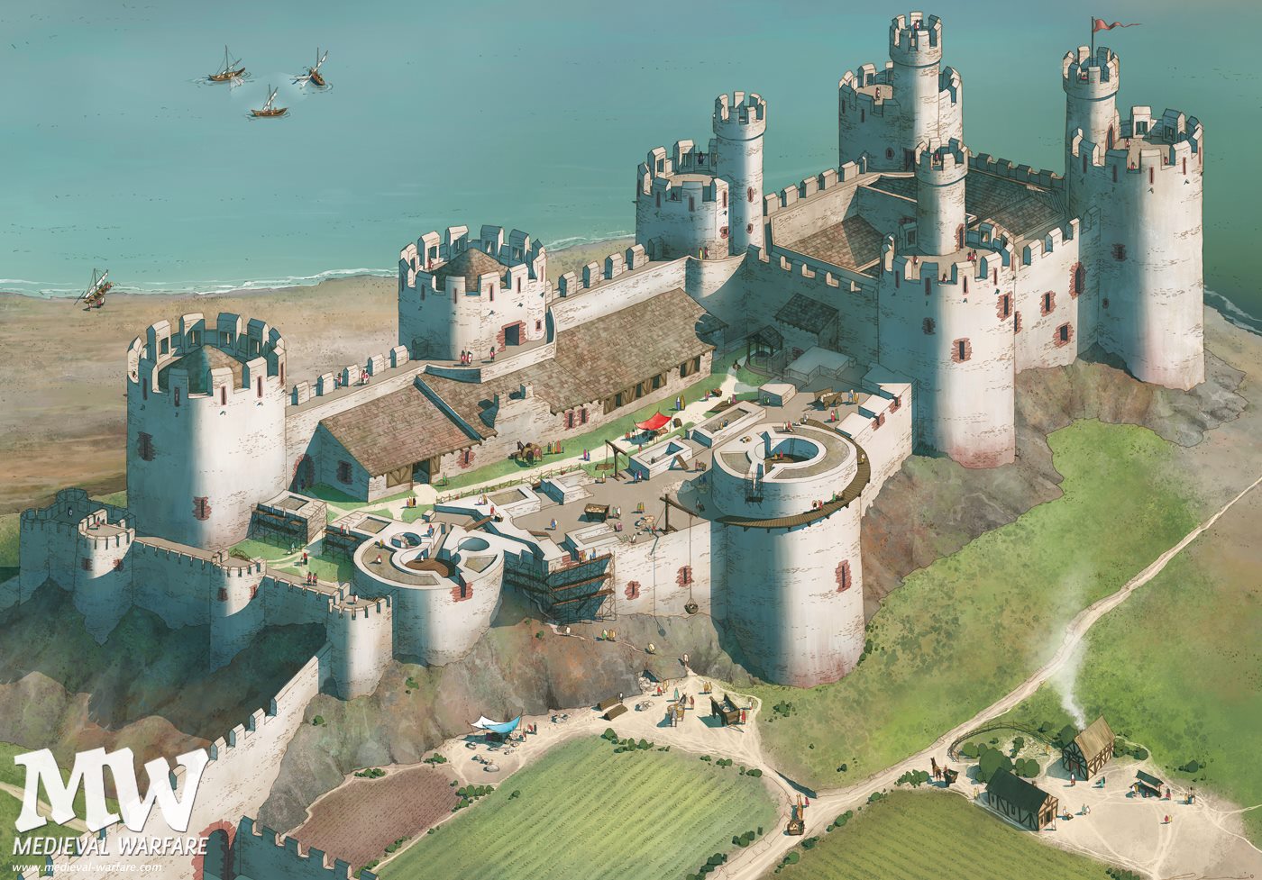 Illustration of the construction of Conwy Castle from 1283 to 1289 CE, by Rocío Espin. Medieval Warfare Magazine / Karwansaray Publishers.