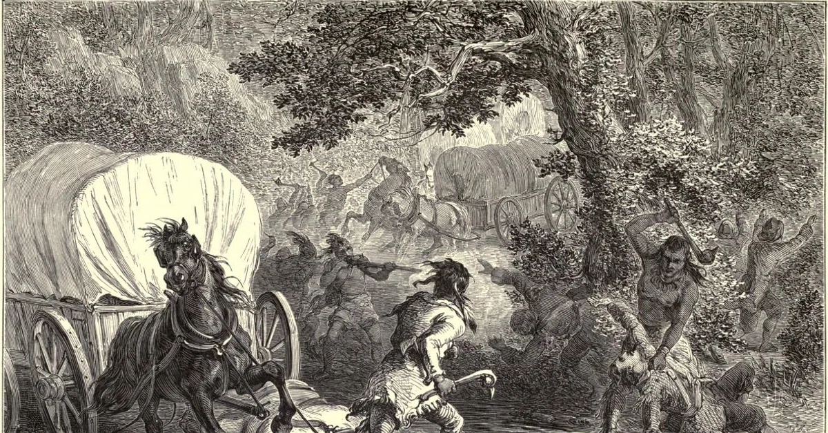 Engraving depicting the Battle of Bloody Brook (1675 CE), published c. 1876 CE. Part of King Philip's War.