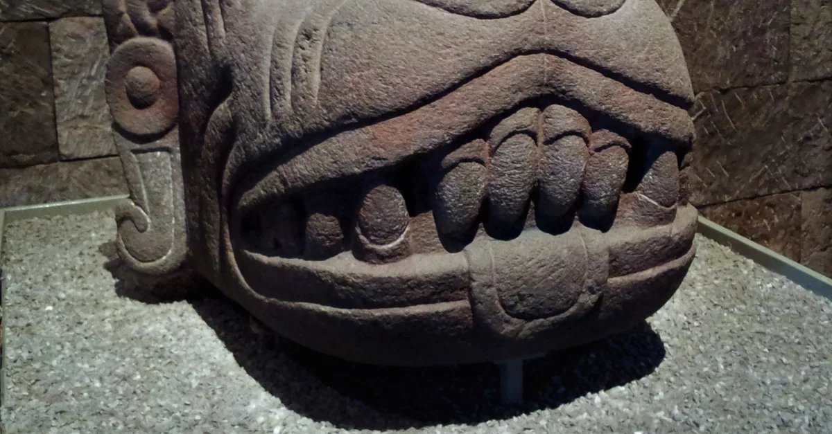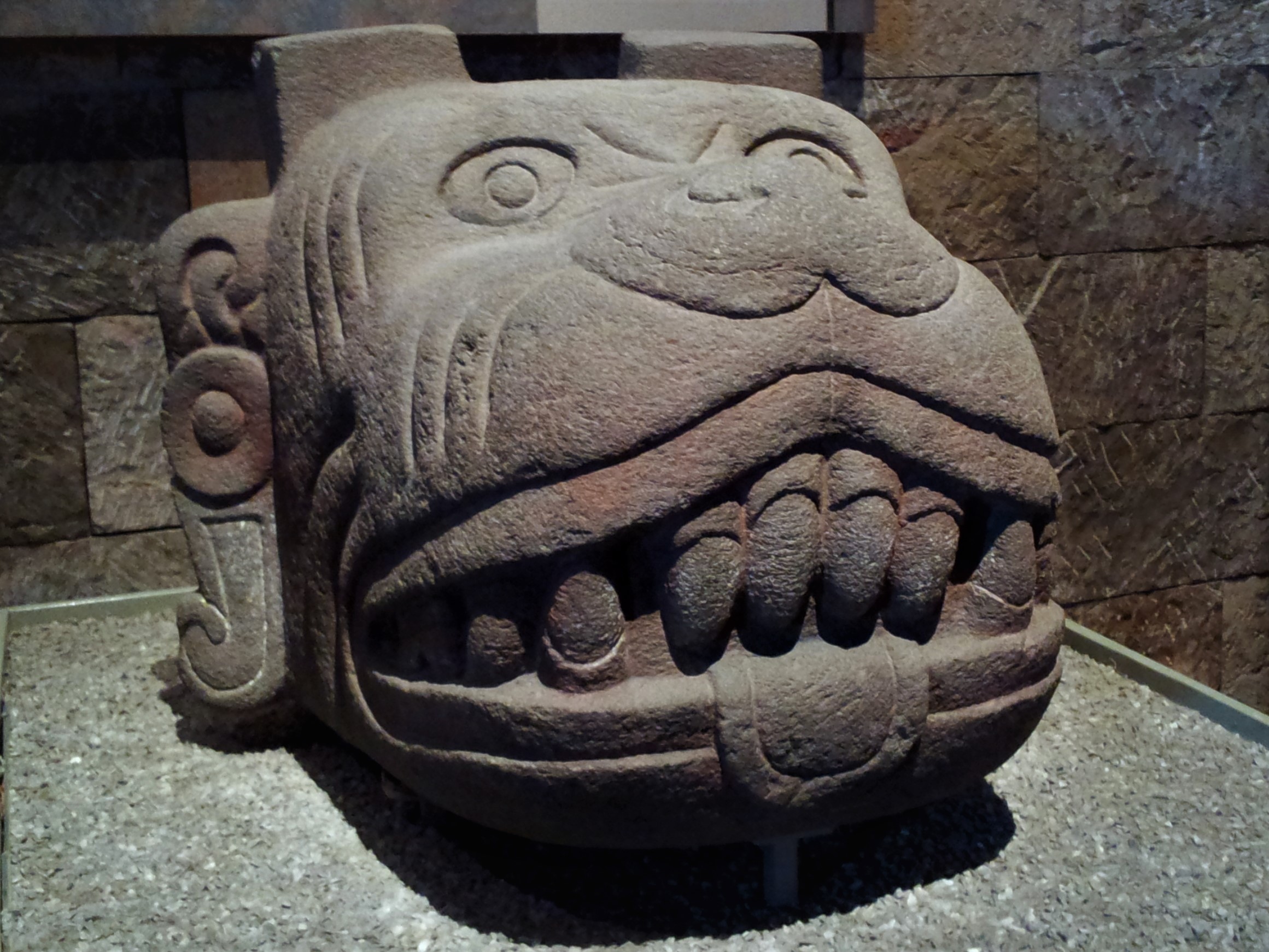Head of the Aztec god Xolotl. Collection of National Anthropological Museum, Mexico City.