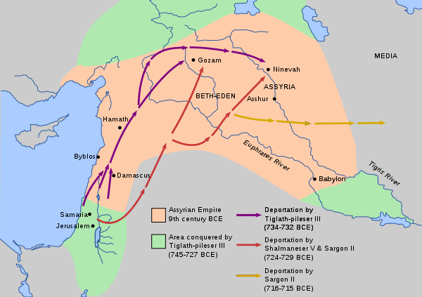 A map showing the deportation of the Jews by the Assyrians.