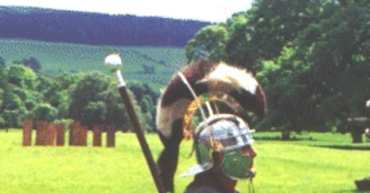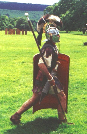 A re-enactor kitted out as an optio of the Roman army. The optio was one of the principales officers and responsible for training amongst other duties.