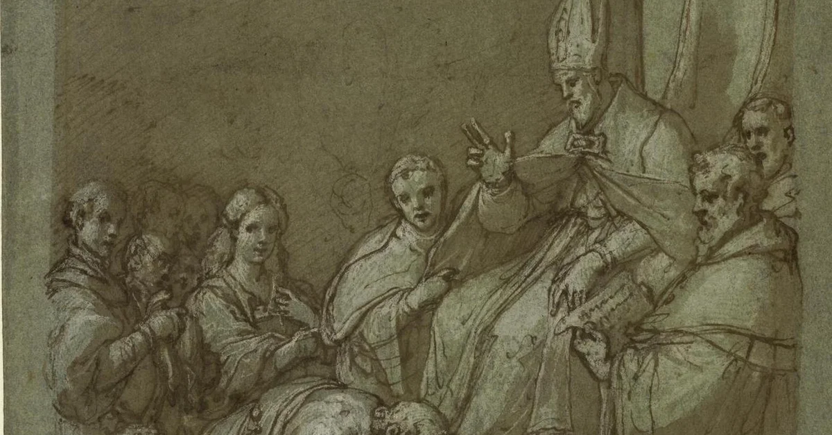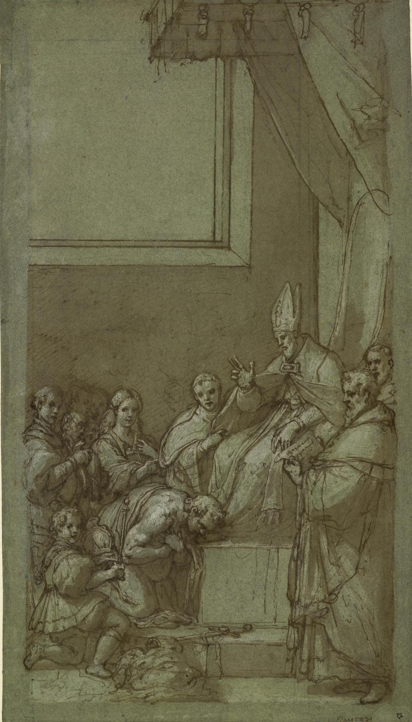 Henry IV, Holy Roman Emperor (r. 1084-1105) submitting to Gregory VII at Canossa in 1077, study for a fresco by Federico Zuccaro, 1557-1609.
