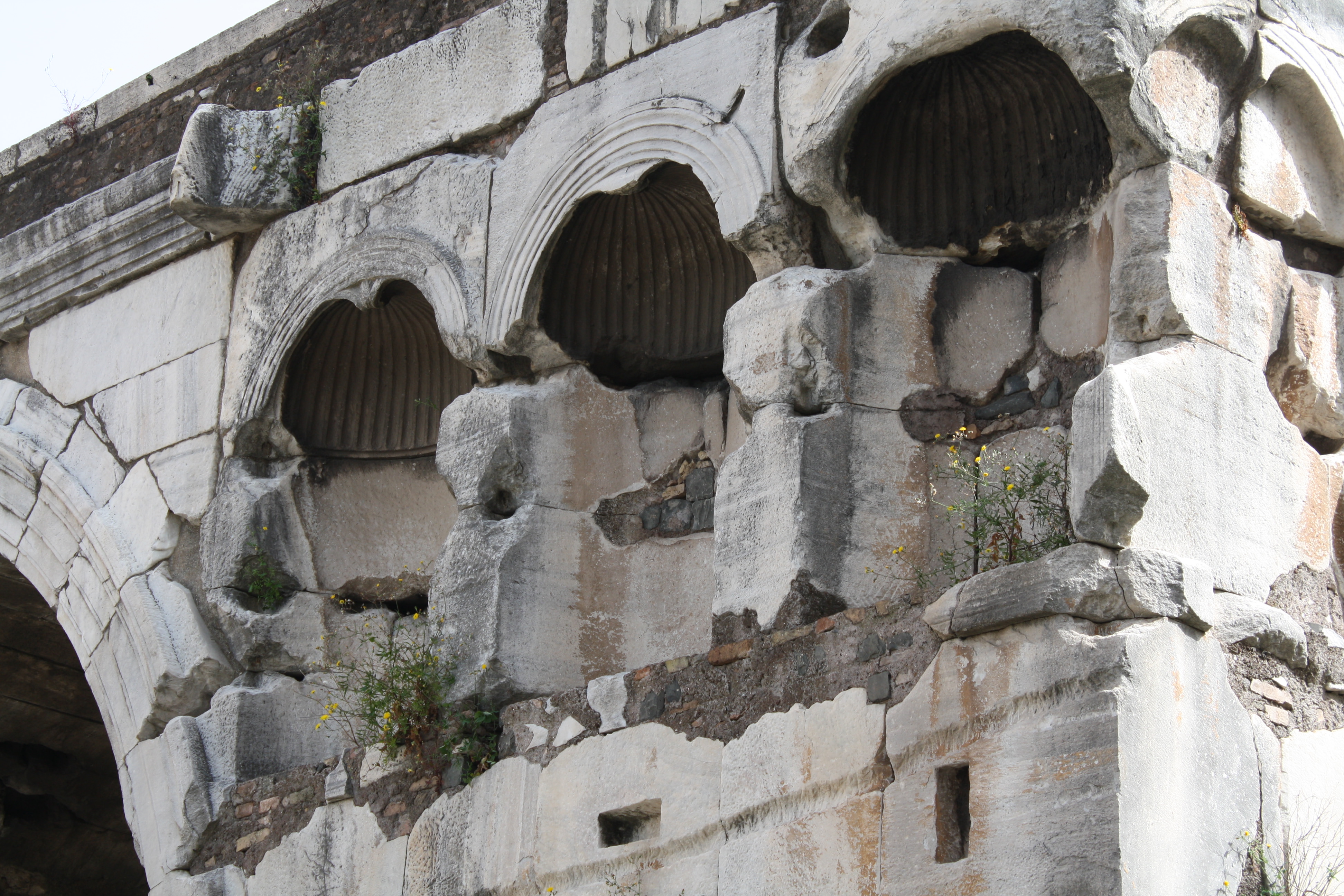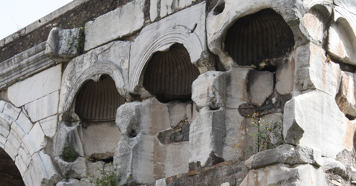 A detail of the carved niches on the Arch of Janus which stood in the forum Boarium of Rome and was constructed in the 4th century CE most probably to act as a boundary marker.