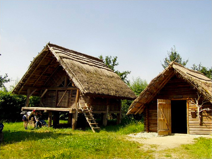 Reconstructions of Hallstatt Culture (c. 1200 - c. 450 BCE) buildings at the open-air museum at Mitterkirchen im Machland, Austria.