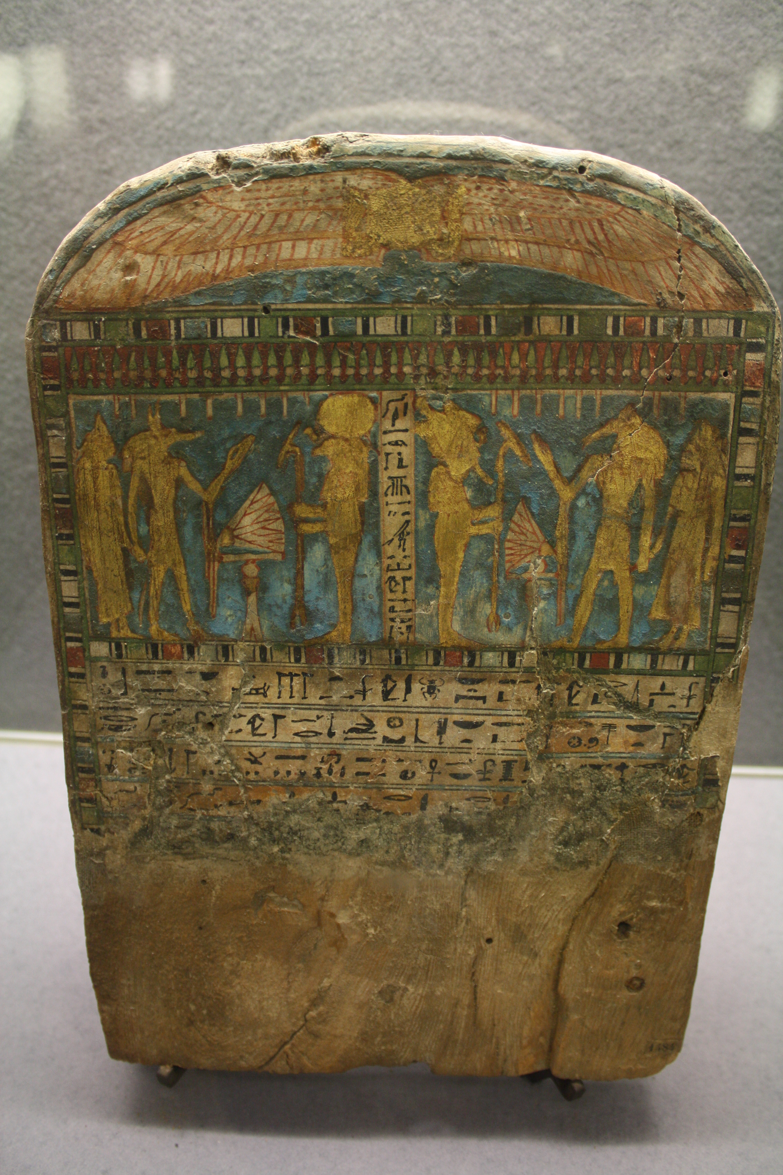 A funerary stele from Thebes, Egypt. Plastered and painted wood. 7th-4th century BCE. (Archaeological Museum of Milan, Italy)