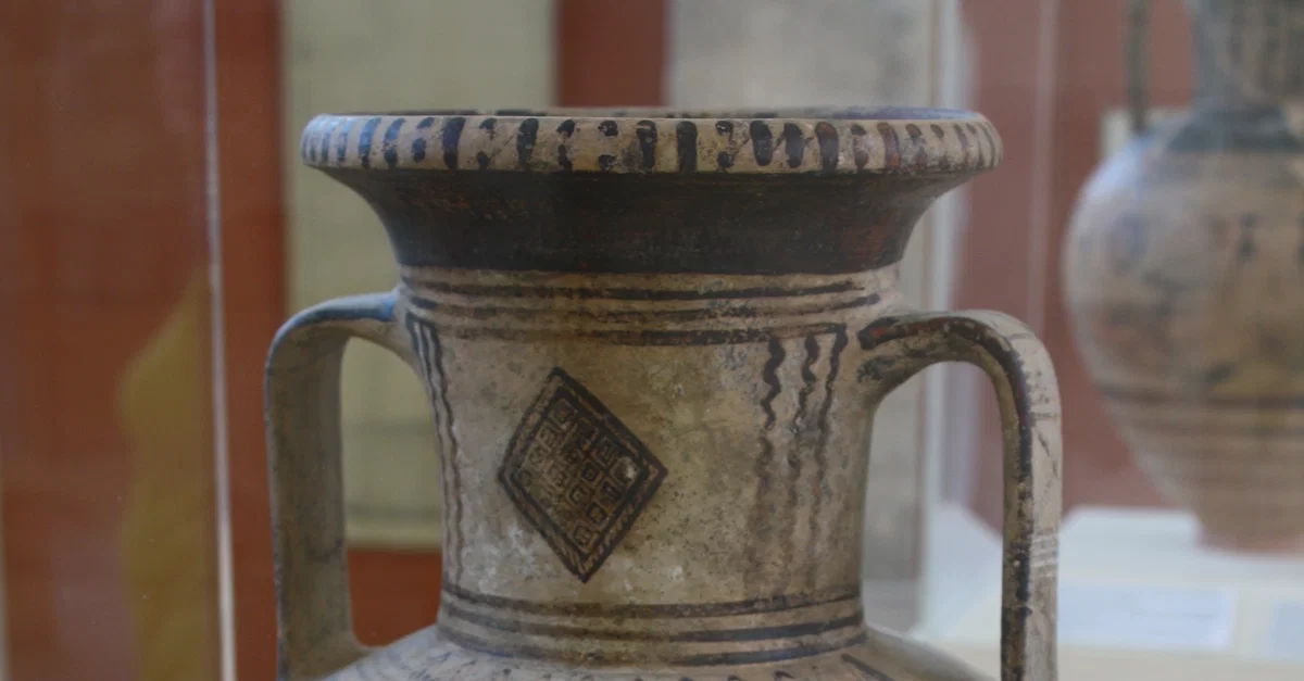 A geometric amphora with a battle scene including a chariot. 8th century BCE. (Archaeological Museum of Paros, Greece)