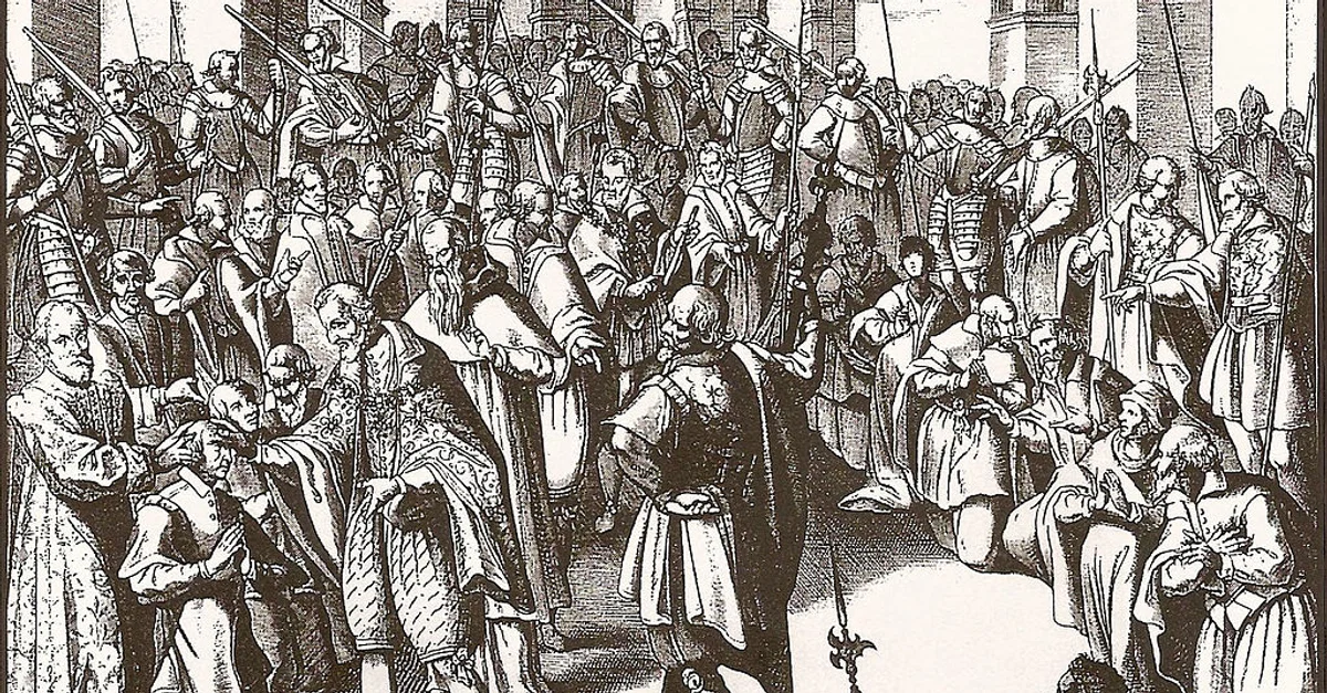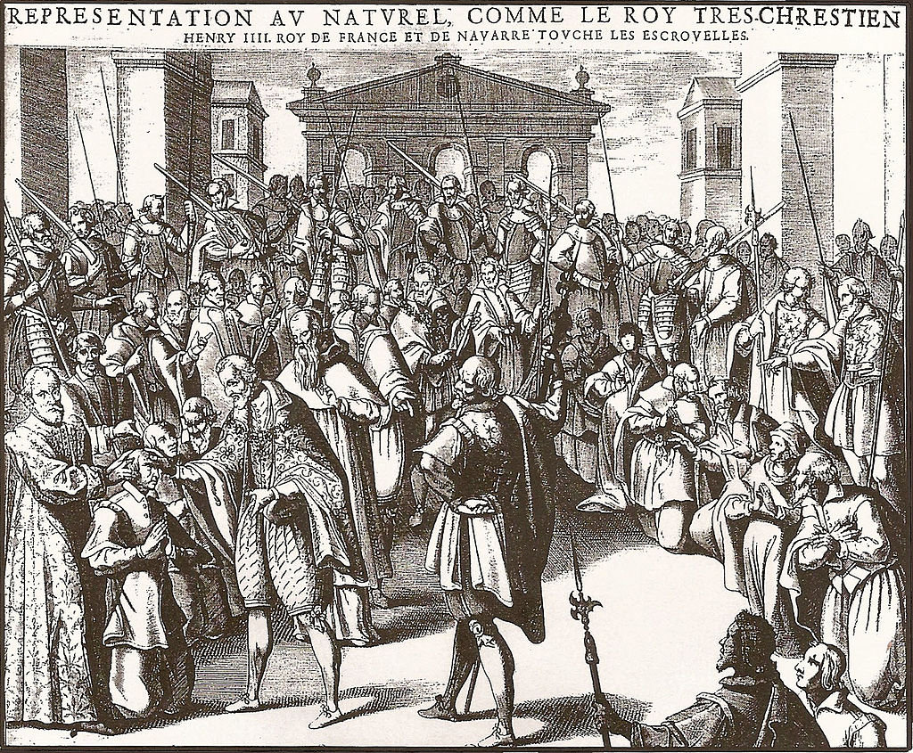 Henry IV of France (r. 1572-1610) touching 575 people in Reims during the Holy Week of 1606, due to the prevailing belief that the royal touch could cure illness.