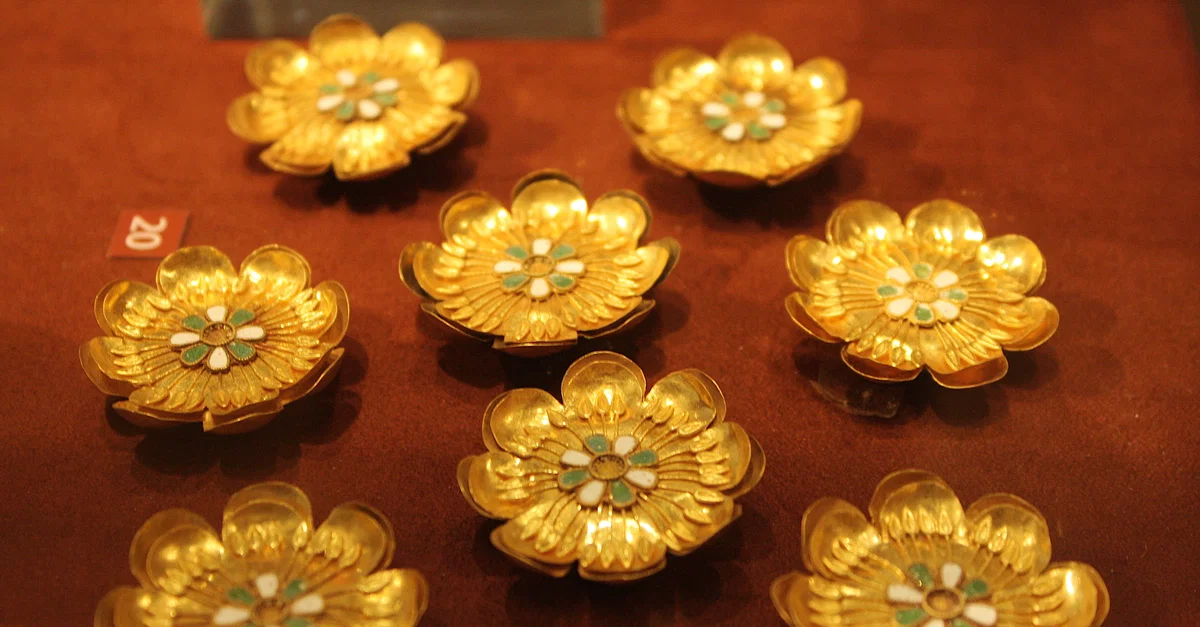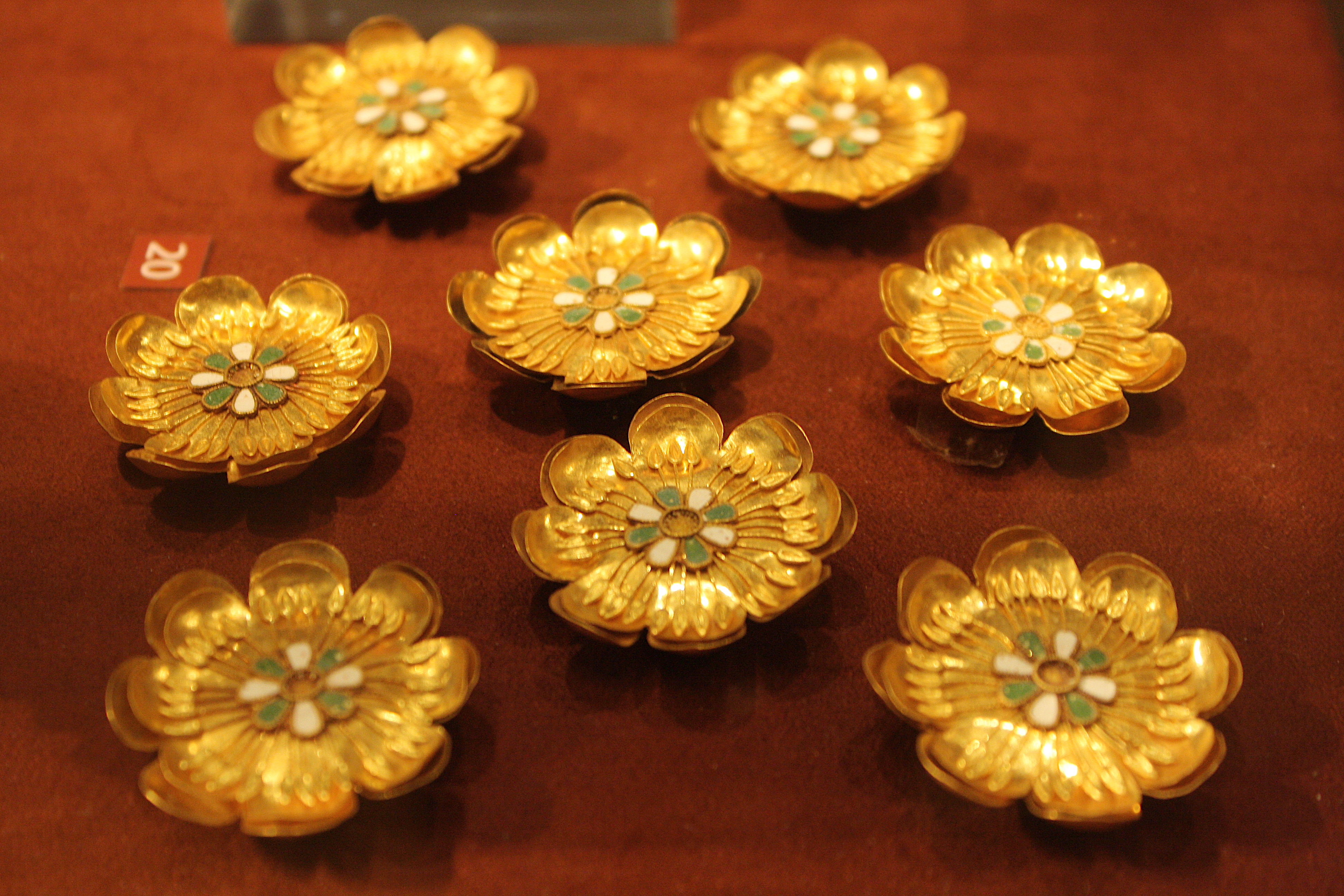 Gold and enamel rosettes used to decorate ancient Greek clothing. 4th century BCE.(National Archaeological Museum, Athens)