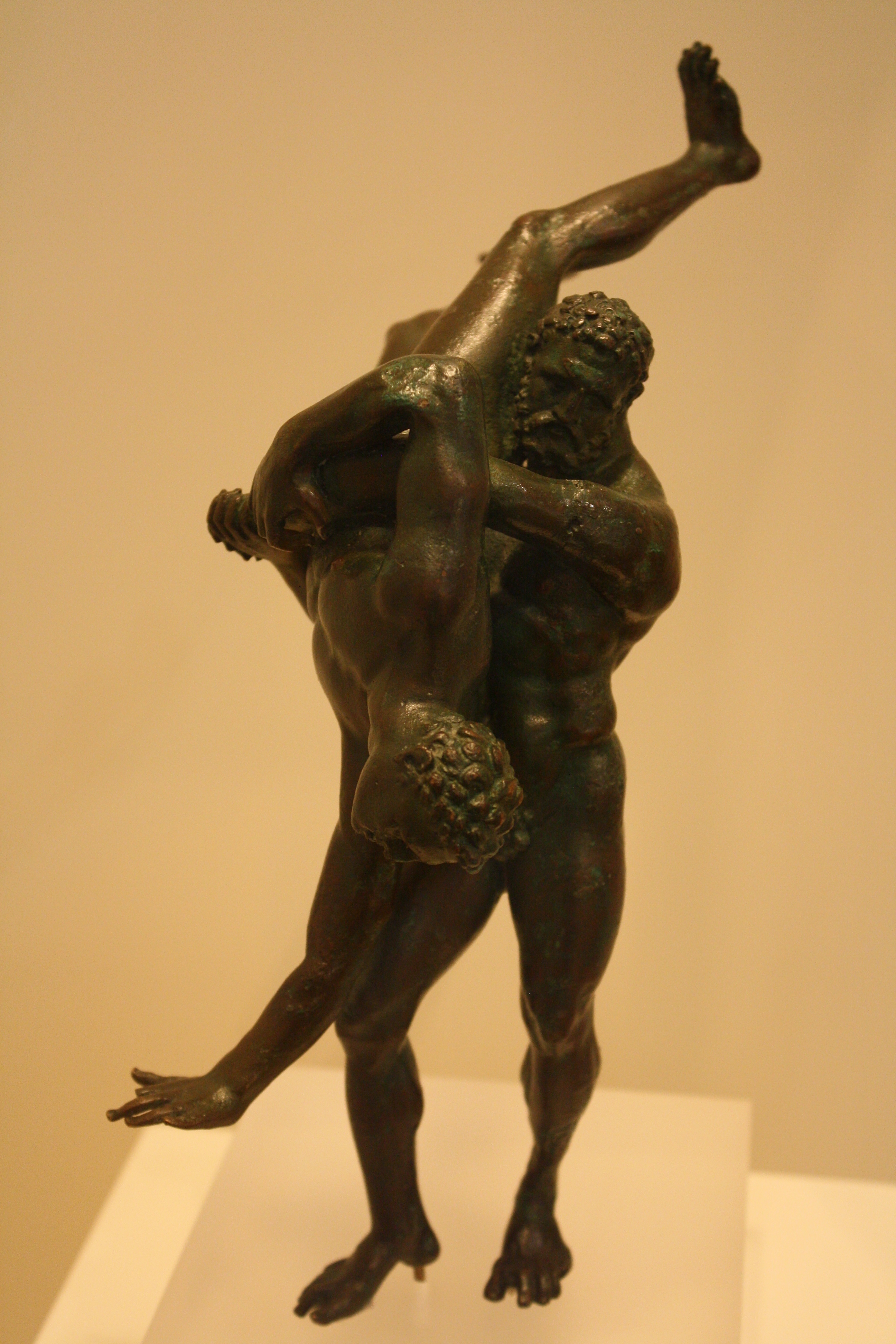 A copper-alloy figurine group showing Hercules wrestling the Libyan giant Antaeus. From Alexandria. 2nd-1st century BCE. (National Archaeological Museum, Athens)