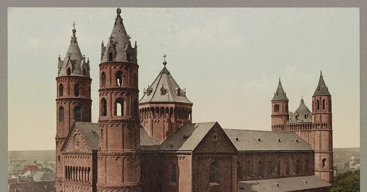 Photo of the Cathedral of St. Peter in Worms, Germany c. 1890-1906. Construction on the cathedral began in 1018. It has hosted a number of historical events, including the Concordat of Worms in 1122 and Martin Luther’s defense at the Diet of Worms in 1521.