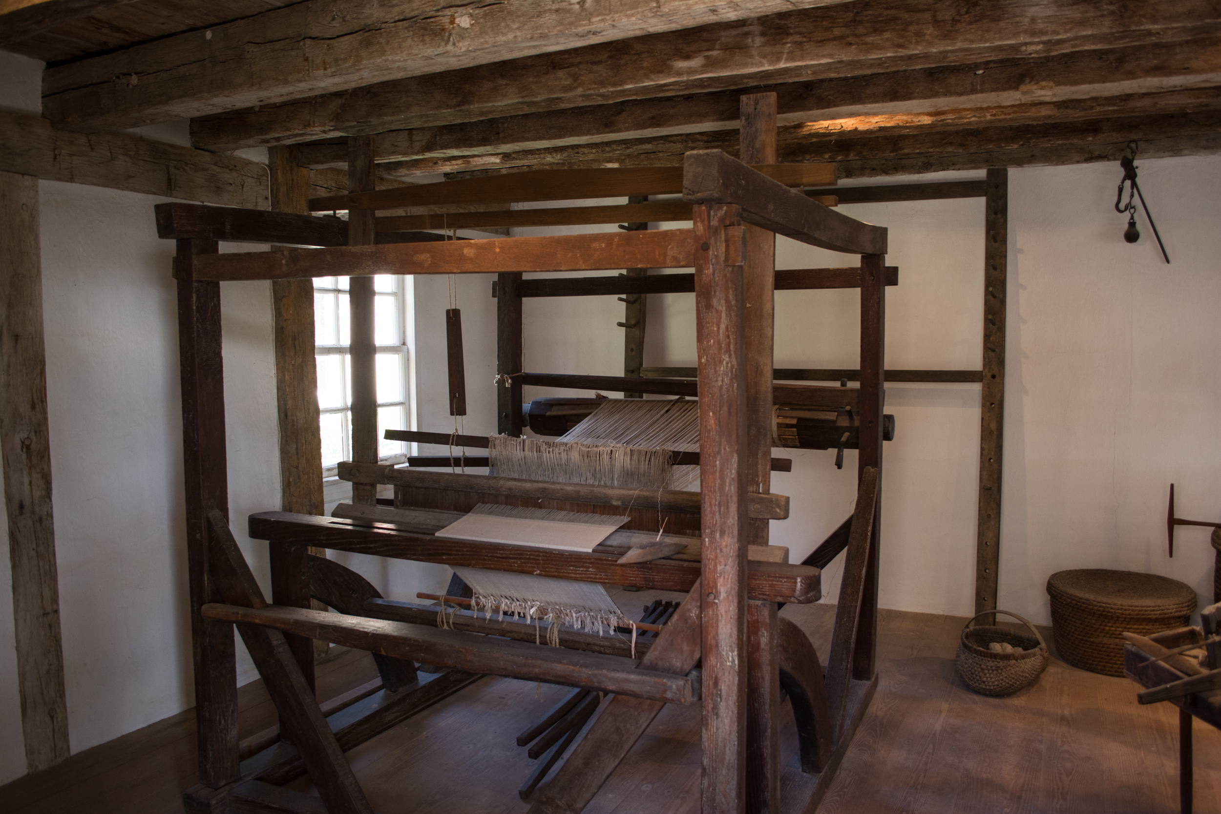 A spinning room containing a loom, from the colonial American Mount Vernon Estate.