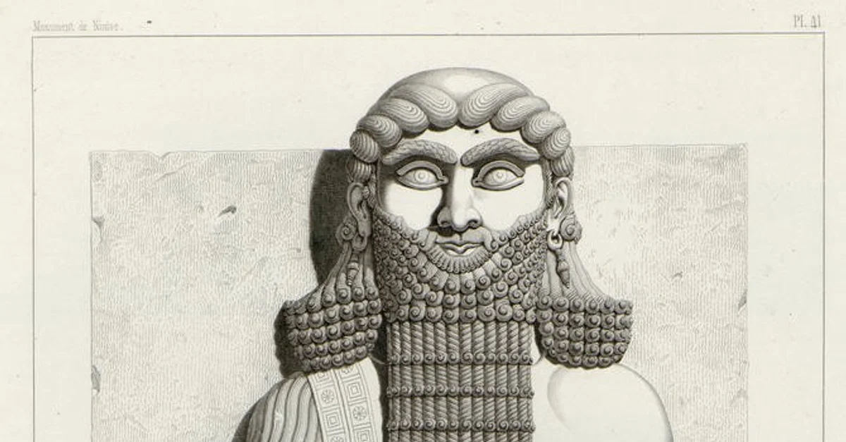 Colossal figure in the facade of the palace of Sargon II in Dur-Sharrukin. Drawing Flandin PL 41 by Paul-Emile Botta (1802-1870 CE), c. 1849 CE.