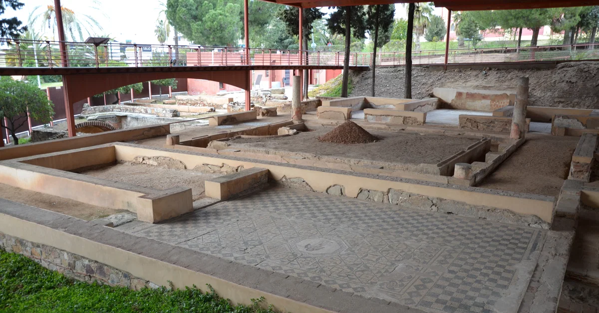 This building was found fortuitously in the early 1960s and takes its name from the discovery in its vicinity of some statues that must have come from a Mithraeum (a temple built to honour the god Mithras). The whole house was built around three collonaded courts with an interior garden and a central pool. The frescoes indicate a 1st century CE origin for the house.
