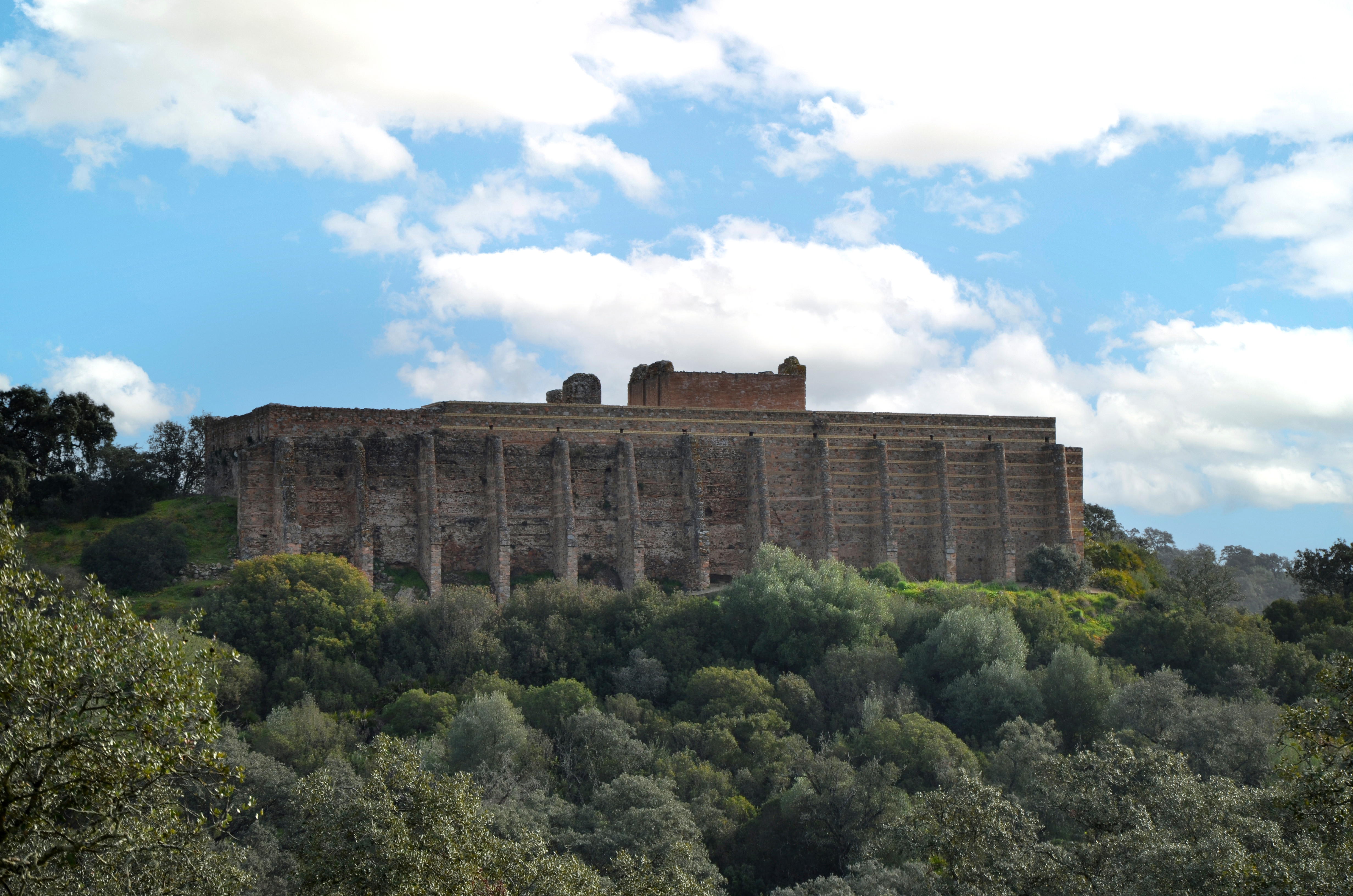 View of the western wall of the terraced sanctuary of Munigua (Spain) built in around 70 CE. Located on the slope of a hill, the santuary was reinforced by buttresses at the rear, giving it the appearance of a fortress.