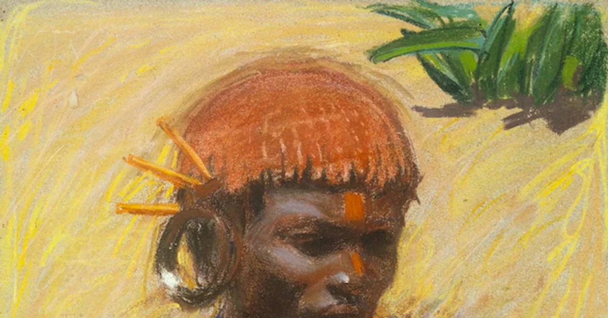 A c. 1909 pastel portrait by Akseli Gallen-Kallela (1865-1931) of a Kikuyu man, Kenosua. The Kikuyu people began to occupy central Kenya from the 17th century and remain its largest ethnic group. Kenousa was an assistant and friend of the artist when he was in East Africa. The portrait is an example of expressionism, a style which looks entirely subjectively at the subject in order to create a certain emotional response in the viewer.