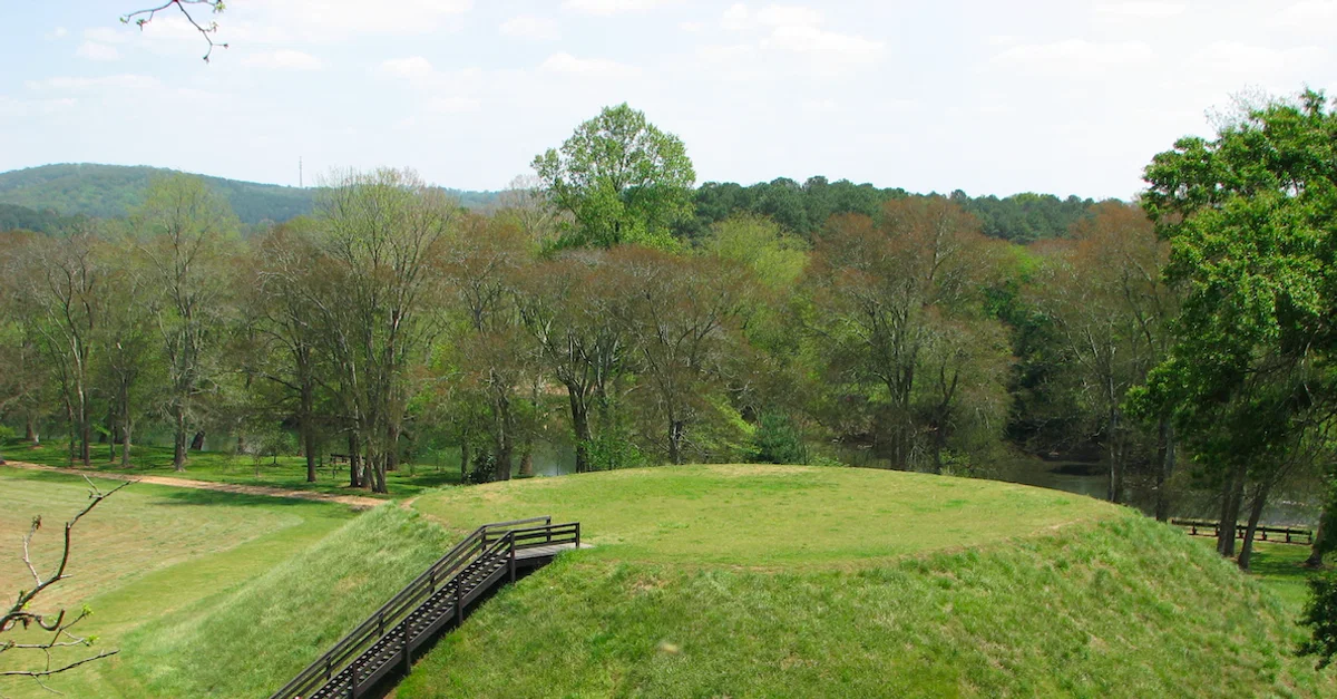 Mound B at Etowah, Georgia, USA. The Etowah Mounds were built in three stages during the period of the Mississippian Culture, c. 1000-1550 CE.