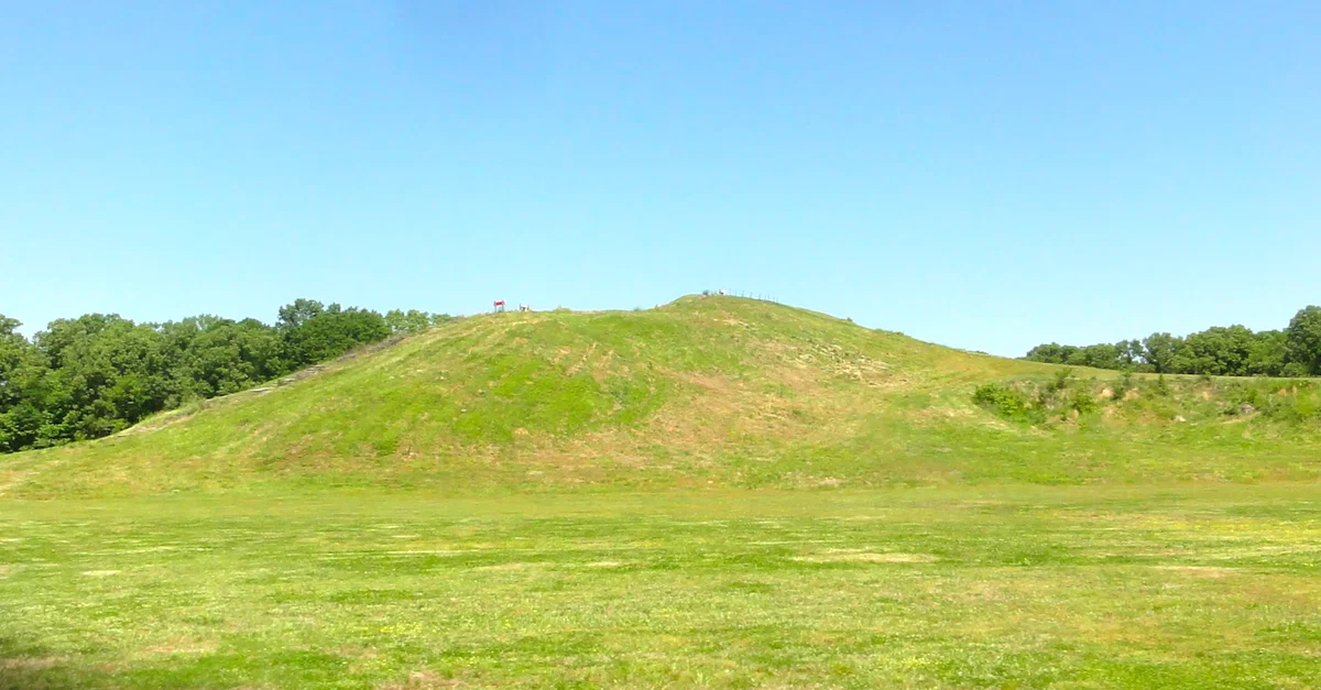 Mound A (aka Bird Mound) at Poverty Point, Louisiana, USA. The mound is 72 feet (22 m) high and 705x660 feet (215x200 m) at the base. Built c. 1700-1100 BCE.