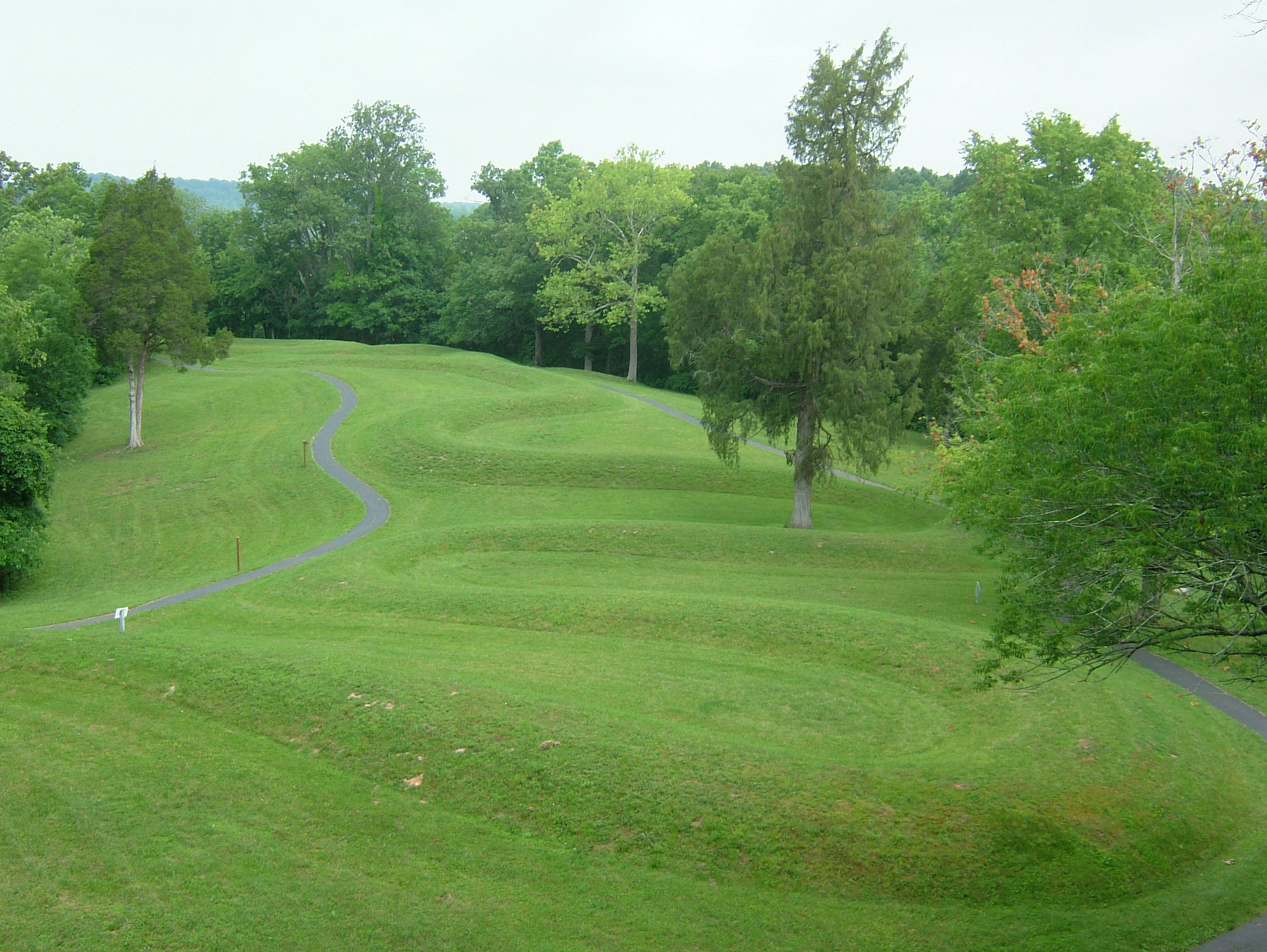 Serpent Mound, Ohio. It was first positively dated and attributed to the Native American Adena culture (c. 800 BCE - 1 CE) but later excavations strongly suggested it was built by the natives of the so-called Fort Ancient culture (c. 1000-1750 CE) and, most likely, around 1070 CE.