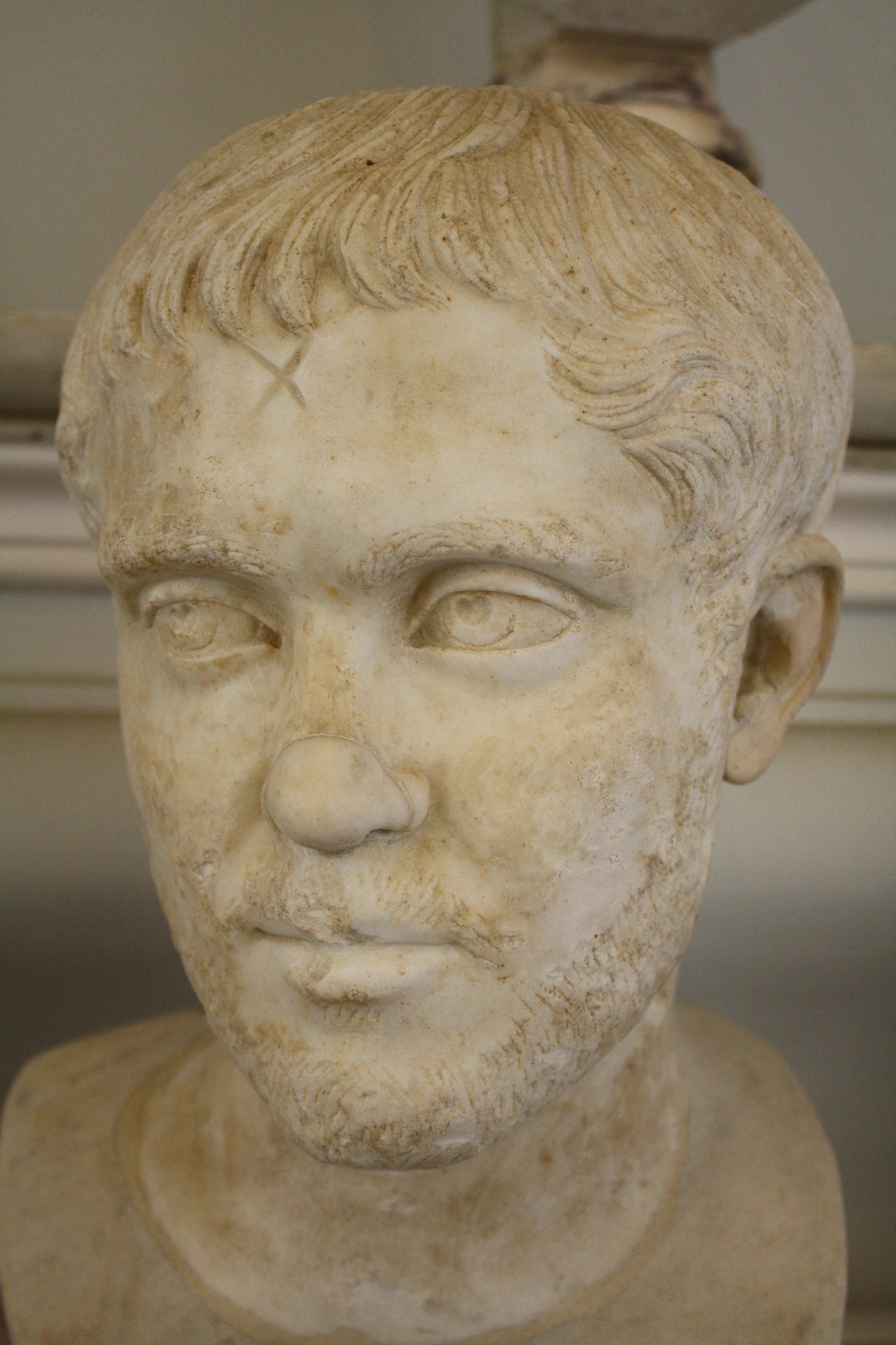 A marble bust of Roman emperor Hostilian, r. 253 CE. (The Vatican Museums, Rome).