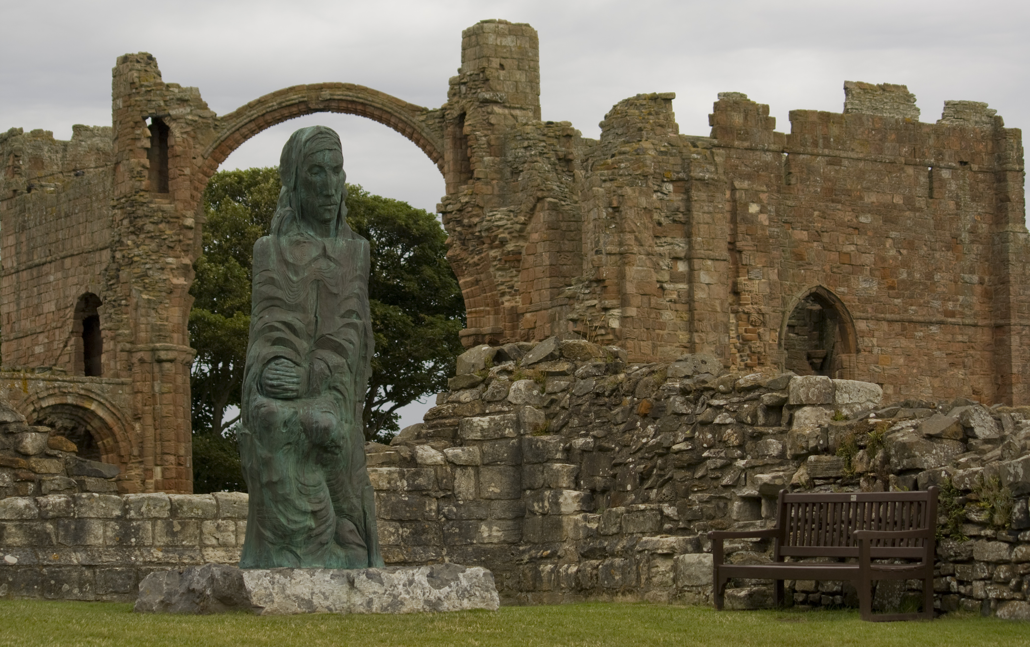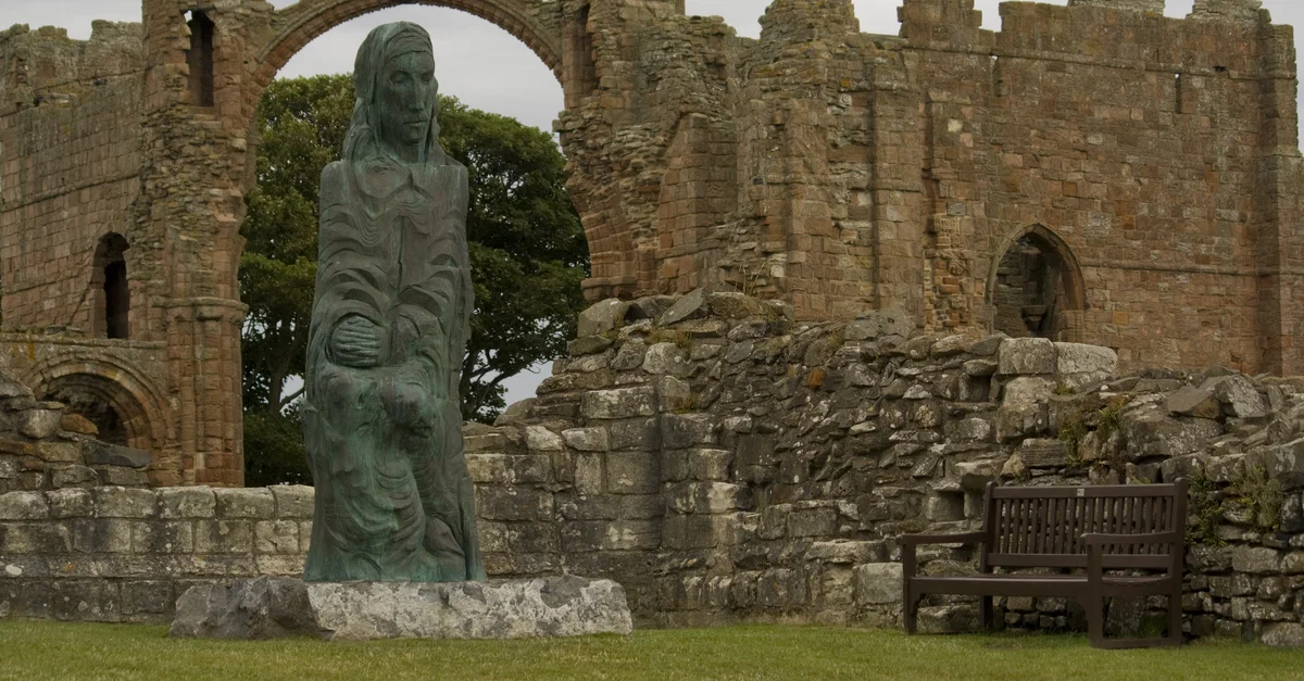 Statue of Saint Cuthbert (c. 634 - 20 March 687) at Lindisfarne Priory.
