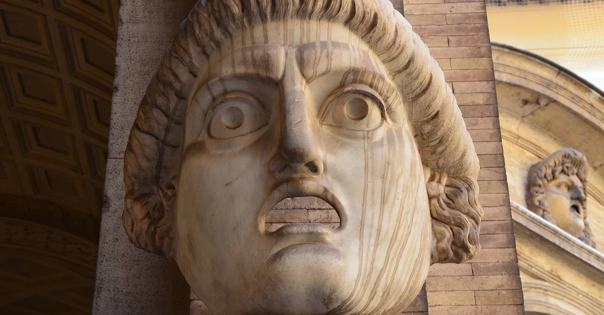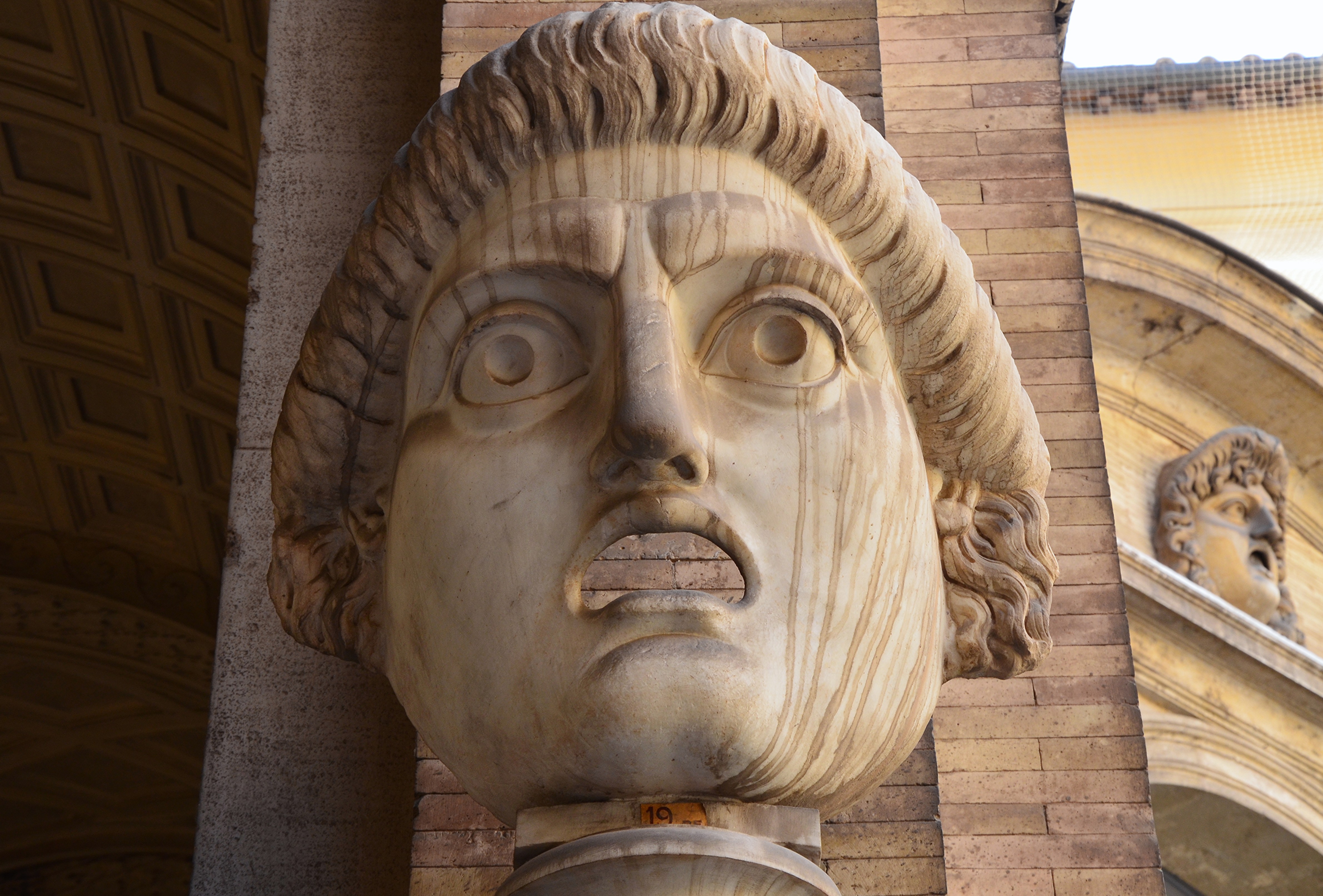 Tragedy mask from the South Theatre (odeum) of Hadrian's Villa in Tivoli (Italy). Cortile del Belvedere, Vatican Museums, Rome.