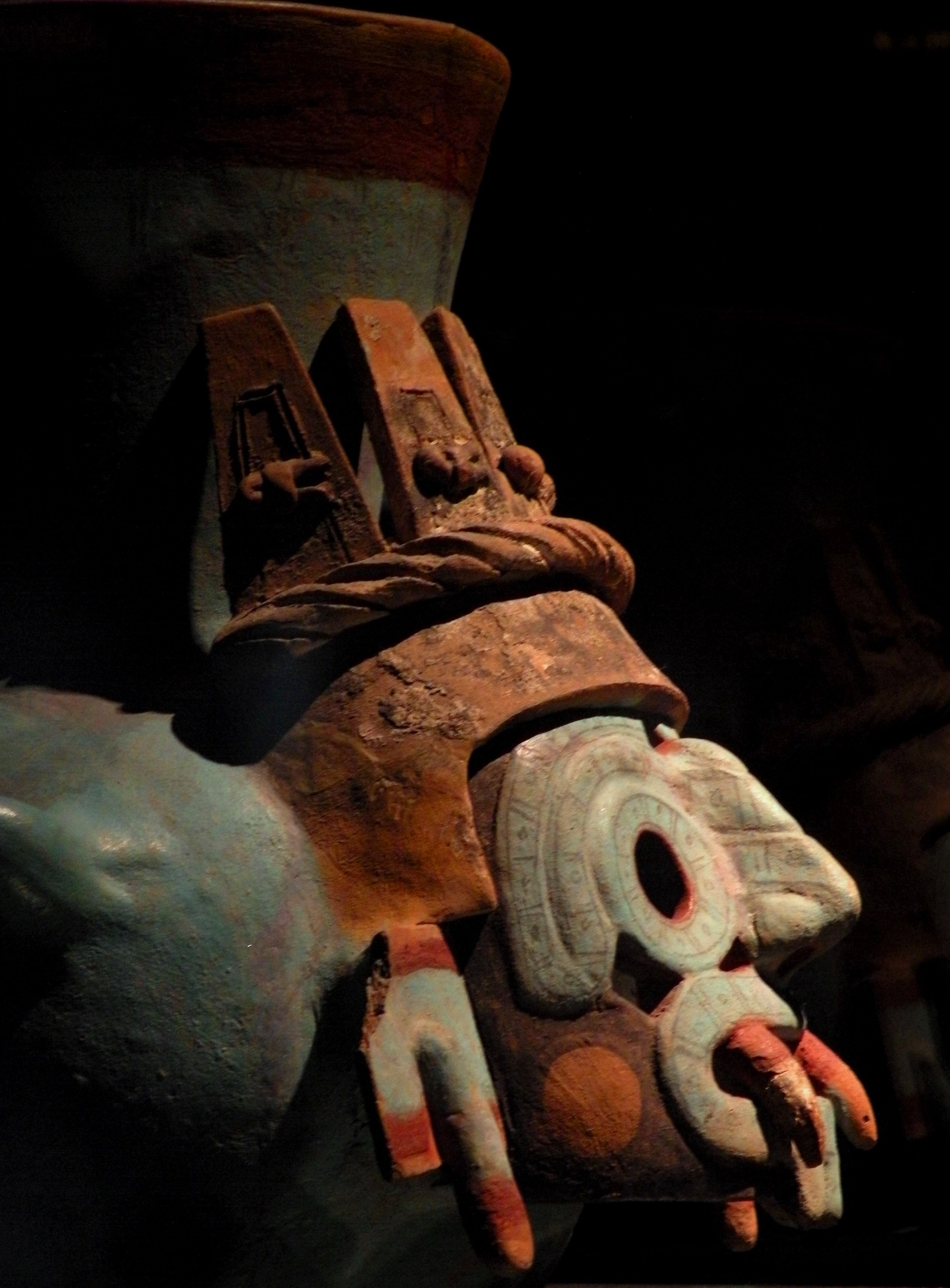 A 15th century CE vase representing the Mesoamerican god of rain, storms and agriculture Tlaloc. From the Templo Mayor in Tenochtitlan. (National Museum of Anthropology, Mexico City).