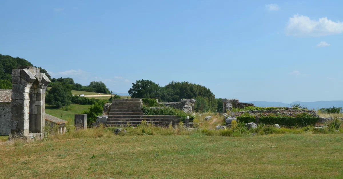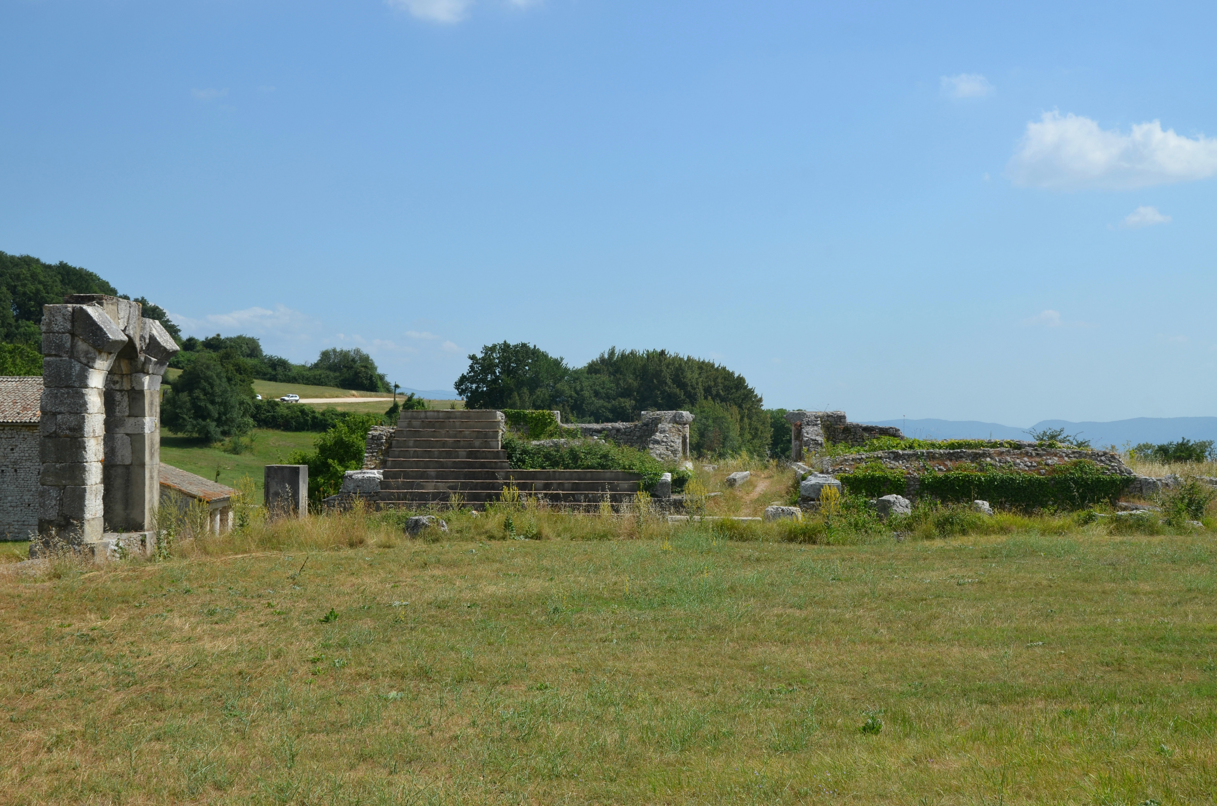 The twin temples at Carsulae in Italy stood on the southern side of the city's forum. Today, only the podiums lined with pink stone slabs remain. The access of the temples was by a flight of steps partly reconstructed. While the divinities to which they were dedicated is unknown, they are generally interpreted as being temples dedicated to the Gemini twins, Castor and Pollux.