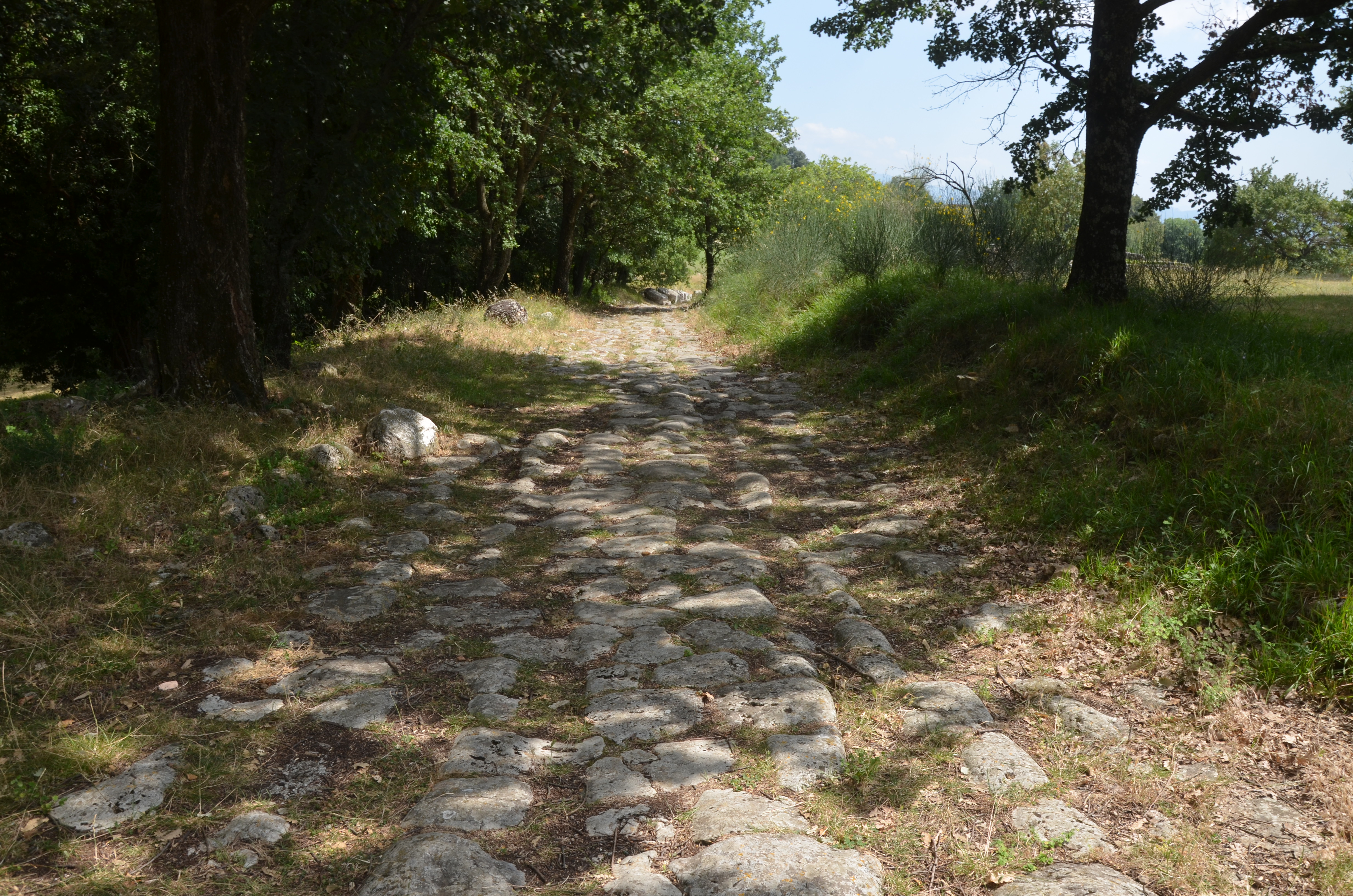 The Via Flaminia is the second oldest Roman road after Rome’s Via Appia. It was a consular road, funded by the state, and built c. 220 BCE to link Rome with the northern coastal city of Ariminum (Rimini) over the Apennine Mountains. The Via Flaminia went through the town of Carsulae (north–south axis) and became the main road or the cardo maximus of which 400 metres are still visible.