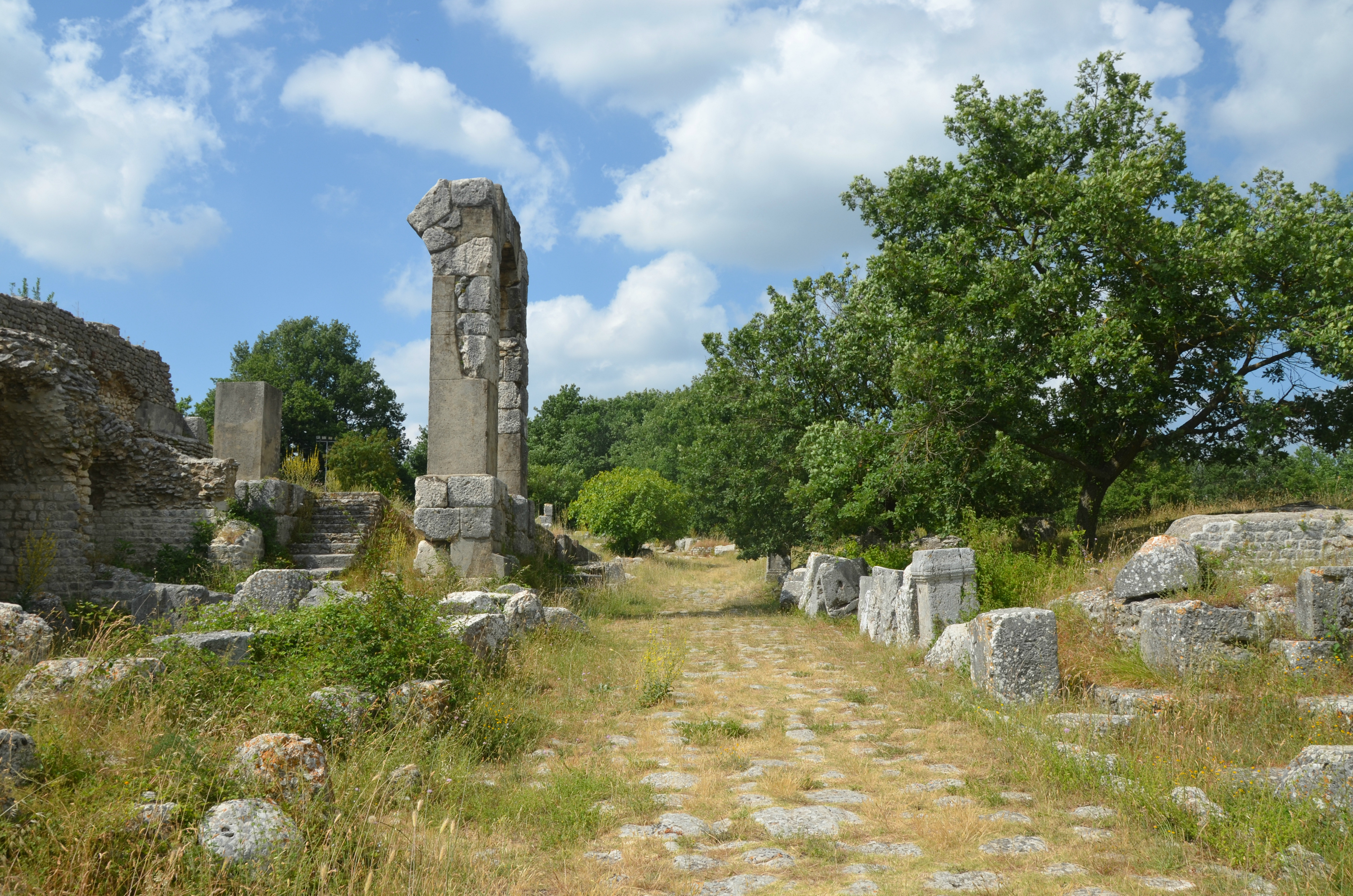The cardo maximus at Carsulae (Italy) was the main north–south-oriented street crossing the city. The reconstructed arch marked the entrance to the forum.